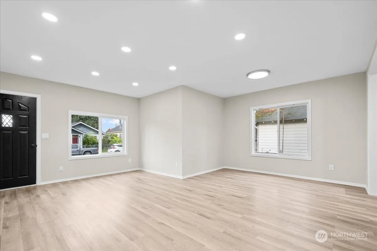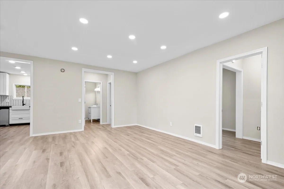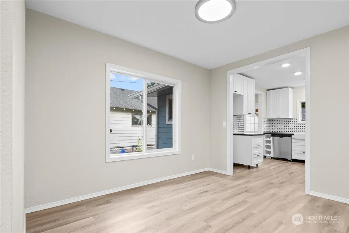 Beautifully updated and remodeled bungalow in great location on a BIG corner lot. Oversized detached garage. OPEN bright and light living room. NEW paint in and out! Laminate flooring, NEW can lighting, Dining space, Remodeled NEW kitchen features NEW cabinets, NEW stainless appliances, Farm-sink, NEW quartz counters. NEW tile backsplash, Two bedrooms on main Possibly third bedroom/bonus up! Fenced yard. Room for RV parking. Close to shopping, restaraunts and freeway.