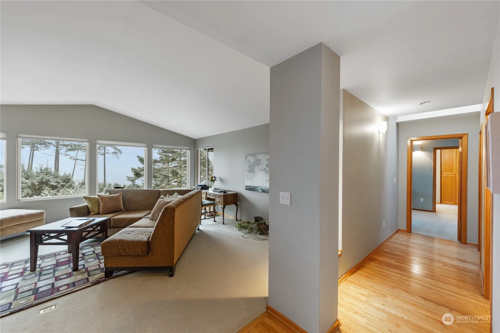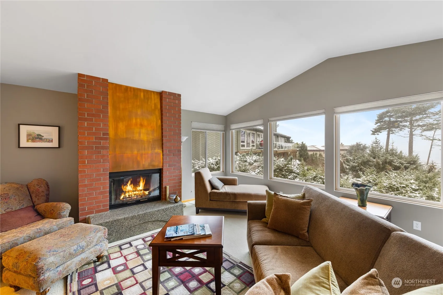 Perched above Libbey Beach Park & West Beach, this stunning home offers the perfect backdrop for a life of tranquility & natural beauty. Imagine evening strolls along the shoreline, watching the sun dip behind the Olympic Mountains. Warm hardwood floors flow throughout the main living spaces, creating an inviting atmosphere. The spacious living room features vaulted ceilings & picture windows, flooding the space with natural light. A charming brick fireplace adds a cozy touch. The heart of the home is the kitchen, designed for both everyday living & effortless entertaining. It boasts a generous breakfast bar, a built-in wine fridge, and abundant storage. This home offers a perfect blend of coastal charm, modern comfort & timeless elegance.