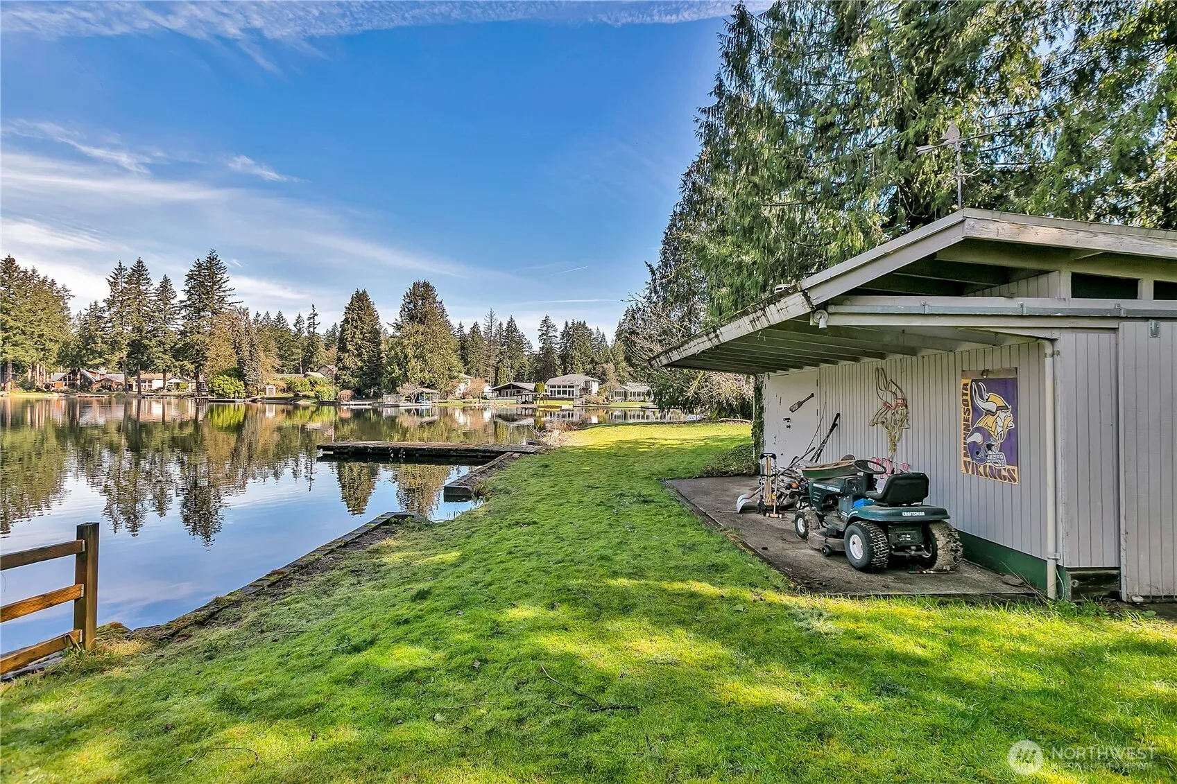 Rare opportunity to own 132 ft of waterfront property on Lake Sawyer a POWER BOAT LAKE! The manufactured home sits on a tranquil cove, offering stunning water views a partial bulkhead, park natural shoreline… There is a 6×27 dock with an adjacent cabana for parties or storage for lake toys and a 22×42 detached garage which has a finished space above, that can be used for rental income or temporary living while you build your dream house! Sewer hookup is available, you have the option to build your dream lakefront home with potential to build up to 2 ADU’s on the property per the City of Black Diamond. Enjoy peaceful mornings on the water and endless recreation. Don’t miss this chance to live on a lake!