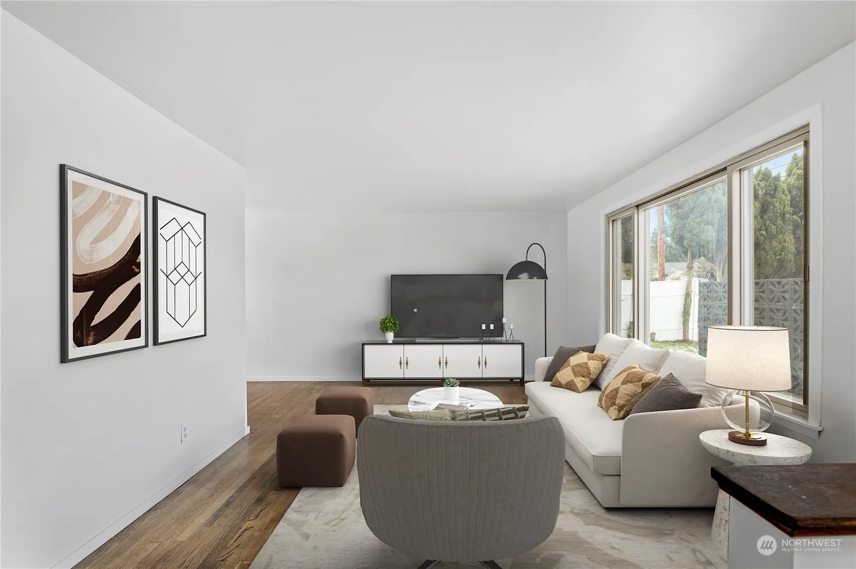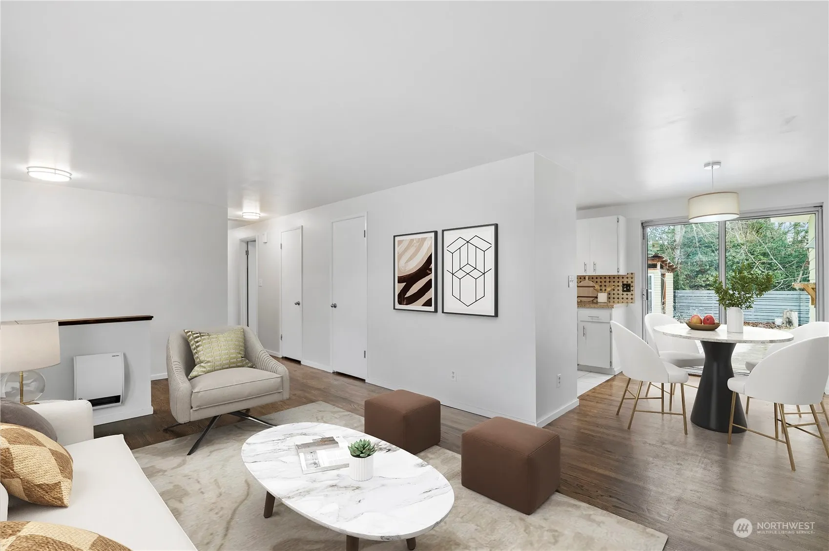 Looking for that stylishly vintage home with modern comfort and an additional living space? 4 bedrooms: 3 bedroom home all on one level and then a full one bedroom apartment with its own kitchen, laundry and private entrance. Space to park the toys, minutes to 99 and I5. Main house has fresh paint, lighting, appliances & bath vanity. Lovely hardwood floors. Kitchen is the hub of life inside and out. One car garage for parking or storage. Apartment is sleek with compact function, built-in eating bar, fireplace, tv, and even the bedroom furniture. Private, fully fenced backyard is perfect for outdoor play and gathering. Super cute outbuilding is ready for gardening or artistry- come find your gem!!