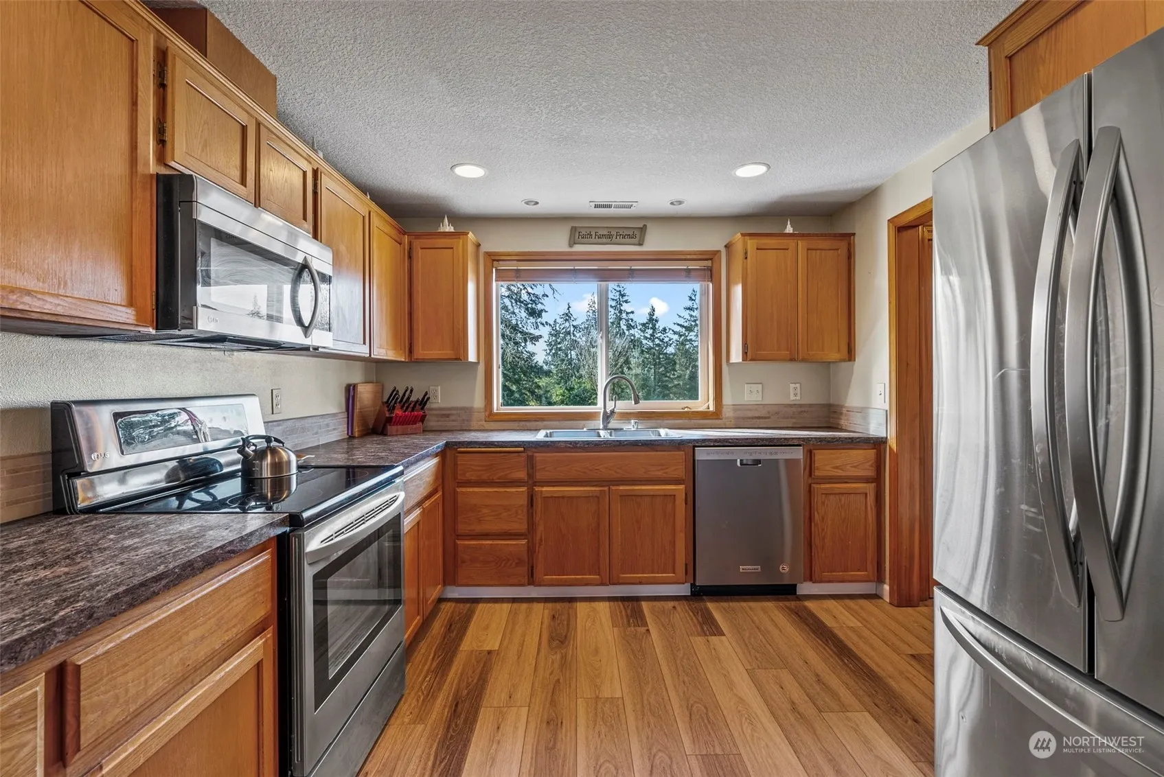Looking for move in ready. This Kalama area home offers 3 bedrooms, 2.5 bath, double garage, lots of paved parking & easy access to I-5 for the commuter. Offering new LPV flooring on main level, wrap around porch, electric FA heat, central vac., dining area, separate utility & kitchen appliance stay. Oak kitchen w/lots of cabinets & pantry closet. Lot is .40 of an acre, partially fence, outbuilding/work shop w/area for landscaping supplies & fire pit. Nicely landscaped front yard w/sprinkler system & minutes to downtown Kalama for dining & necessities. Well cared for home with lots to offer. Backyard is level w/ room to play & entertain, along with a wooded view & beautiful evening sunsets.