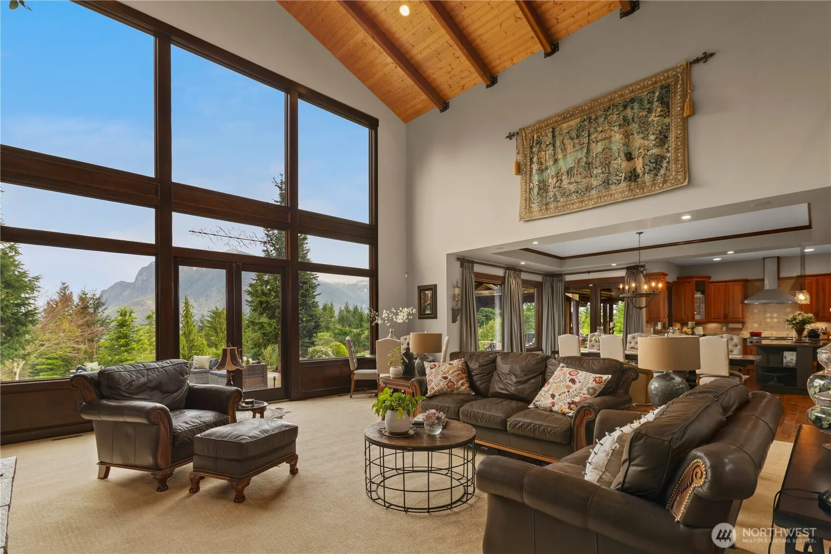You don’t have to go far to feel far away. Discover your own National Lodge in the Uplands. This bespoke 7-acre estate, custom-built Northwest timber home by Tom Banducci stuns you with breathtaking views of Mt. Si from nearly every room. Perfectly positioned between nature and the city, just 25 min from Bellevue & 20 min from Snoqualmie Pass. Active living abounds here! Enjoy the multisport court w/pro-style batting cage, and the 4-season covered heated patio offers year-round enjoyment. A separate wing for the primary suite ensures privacy and quiet. Wing 2 features 3 addl bedrooms & 2 rec rooms gives you room to grow. 4-car attch garage + 4-car detached gar. Covered RV/Boat pkg. Ensuite on main level. Whole-house generator. Pre-inspected