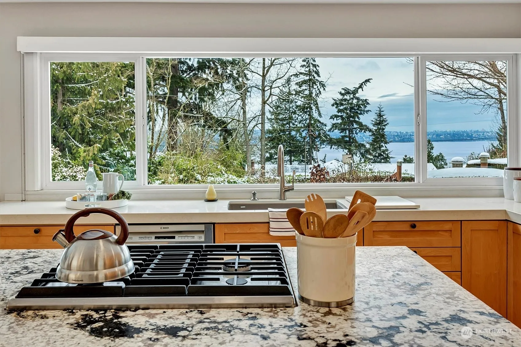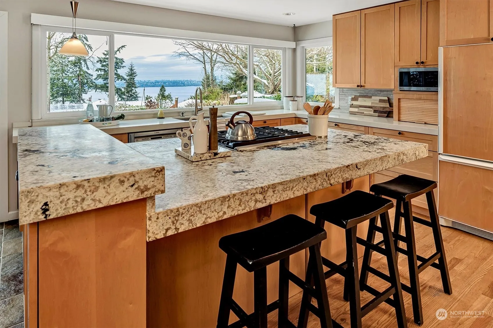 Enjoy stunning views of the Seattle skyline, Lake Washington, and the Olympics from this luxurious home. Entertain year-round on the covered deck with an outdoor fireplace overlooking a nearly 1/2 acre park like gardens. The entertainer’s kitchen features a natural stone island, complemented by spacious living and dining areas. The versatile DADU is perfect for guests, a home office, or nanny quarters. Both structures feature central A/C. Second story can be added to main house (buyer to verify).