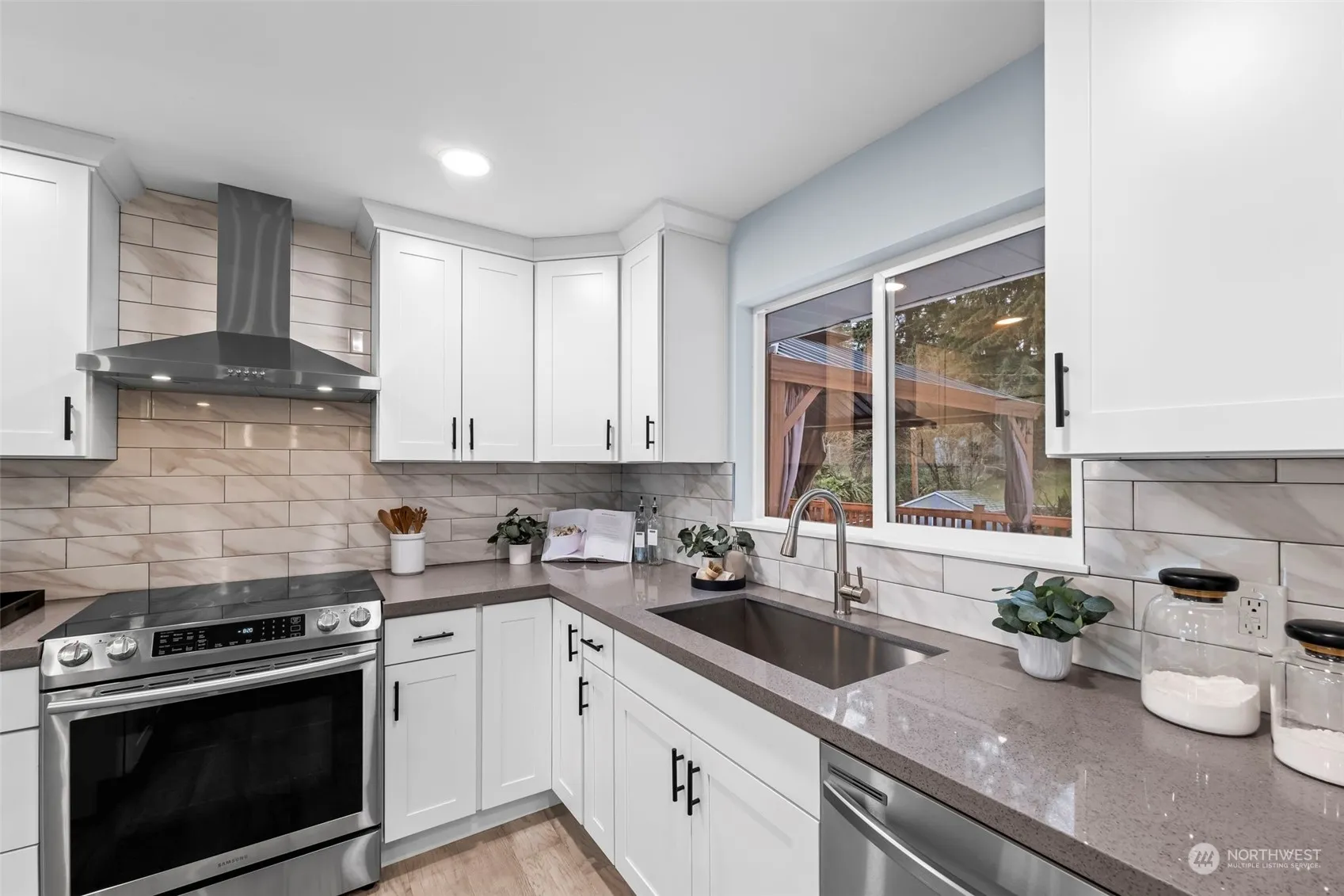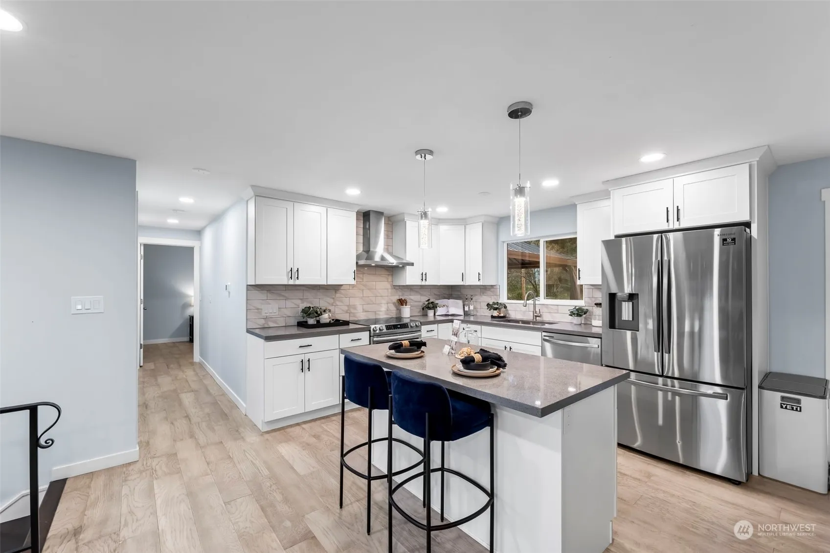 A commuter’s dream meets an entertainer’s paradise! Ideally located near the Edmonds ferry & light rail, this beautifully updated home offers the perfect balance of convenience & retreat. Cozy yet efficient w/newer heat pump, the home hosts 2 living spaces & a primary w/en-suite. The converted garage is a standout entertainment hub, complete w/wet bar (can be converted into a full kitchen), quartz countertops, beverage fridge, surround sound, custom lighting, & epoxy-covered floors. Step outside to a backyard oasis featuring a large deck, covered pergola, built-in seating, fire pit, & premium saltwater hot tub. Stylish vinyl plank & tile flooring complete the inviting interior. Move-in ready & packed with upgrades—don’t miss this rare find!