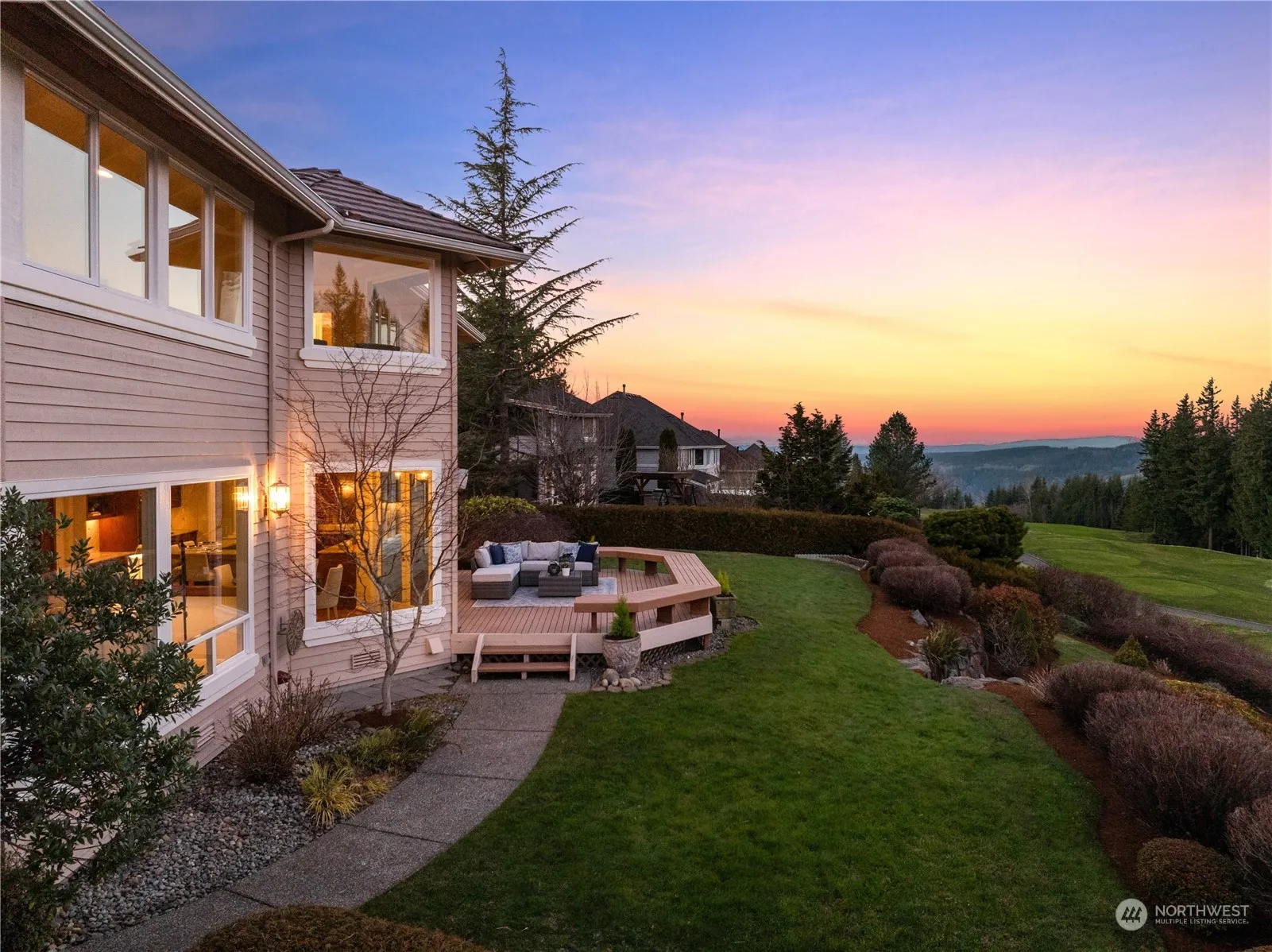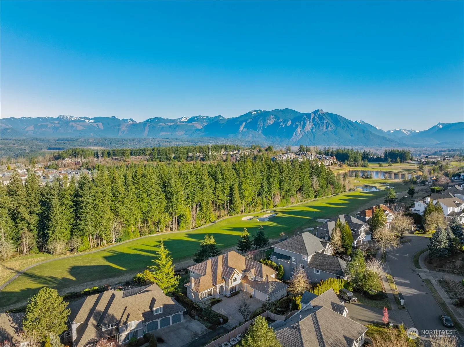 Set along the 8th fairway of The Club at Snoqualmie Ridge, this Buchan-built home offers sweeping views of the emerald fairway framed by snow-capped peaks and towering firs. Recently refreshed with immaculate attention to detail, this home features new paint, flooring, and lighting, while expansive windows bathe the interior in warm natural light. The spacious bonus room and serene primary suite offer velvety green views, while a versatile main-level office adapts to your needs. Step onto nearby trails for peaceful walks beneath the firs, or relax on the deck, letting the golf course and mountain beauty define your days. Find the perfect balance of easy elegance and outdoor recreation within one of Washington’s premier golf communities.