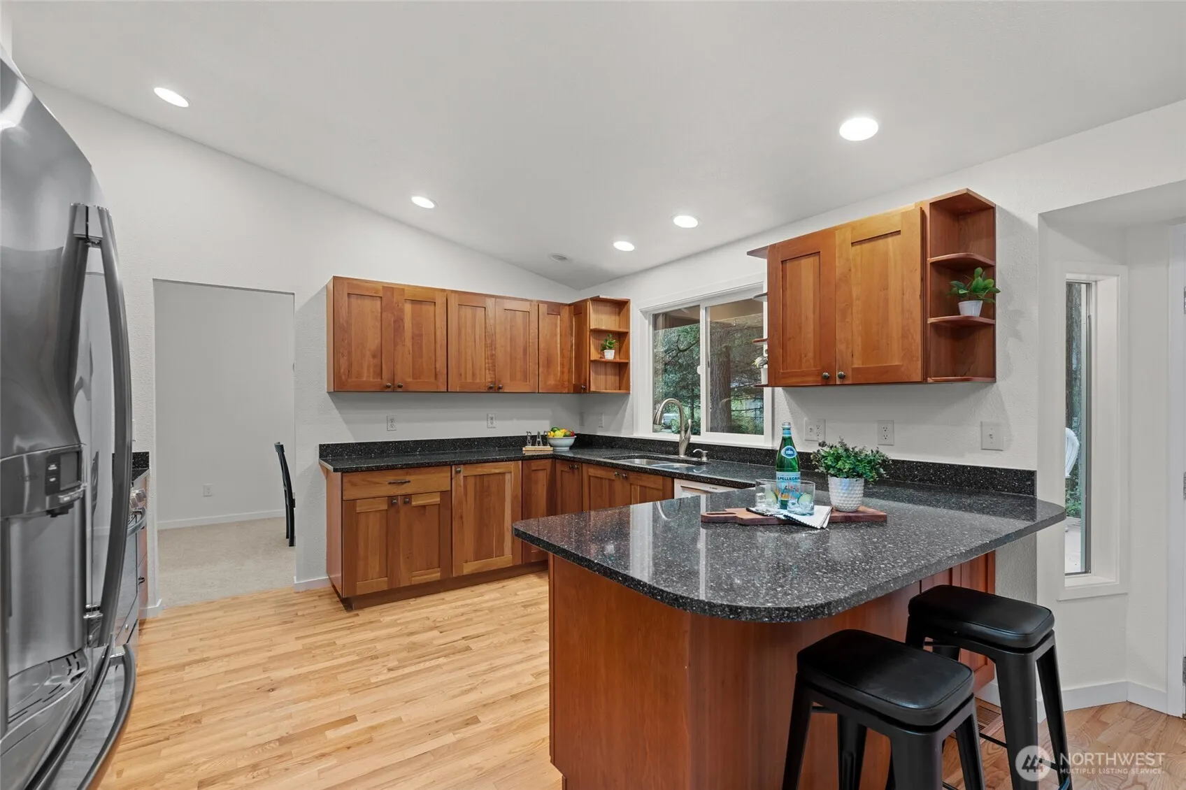 Prime Silverdale location in a sought-after enclave of just 38 homes. Lovingly maintained, this flexible 4-bed split-level is nestled on a .38-acre lot with mature trees and friendly, easy-going neighbors. NEW interior paint, exterior paint (2023), new carpet, refinished hardwood floors, and an updated cherry kitchen with granite counters. Primary bedroom includes private ¾ bath and roomy closet. Recent garage doors and a composite deck accent the exterior. Multiple living areas offer comfortable, flexible spaces throughout. RV parking and 2-car garage, and pre-wired for generator with Honda gen. included. You’ll be minutes from top-rated CK schools, NBK Bangor, and Silverdale’s shops. Come join the circle of this minimal HOA neighborhood.