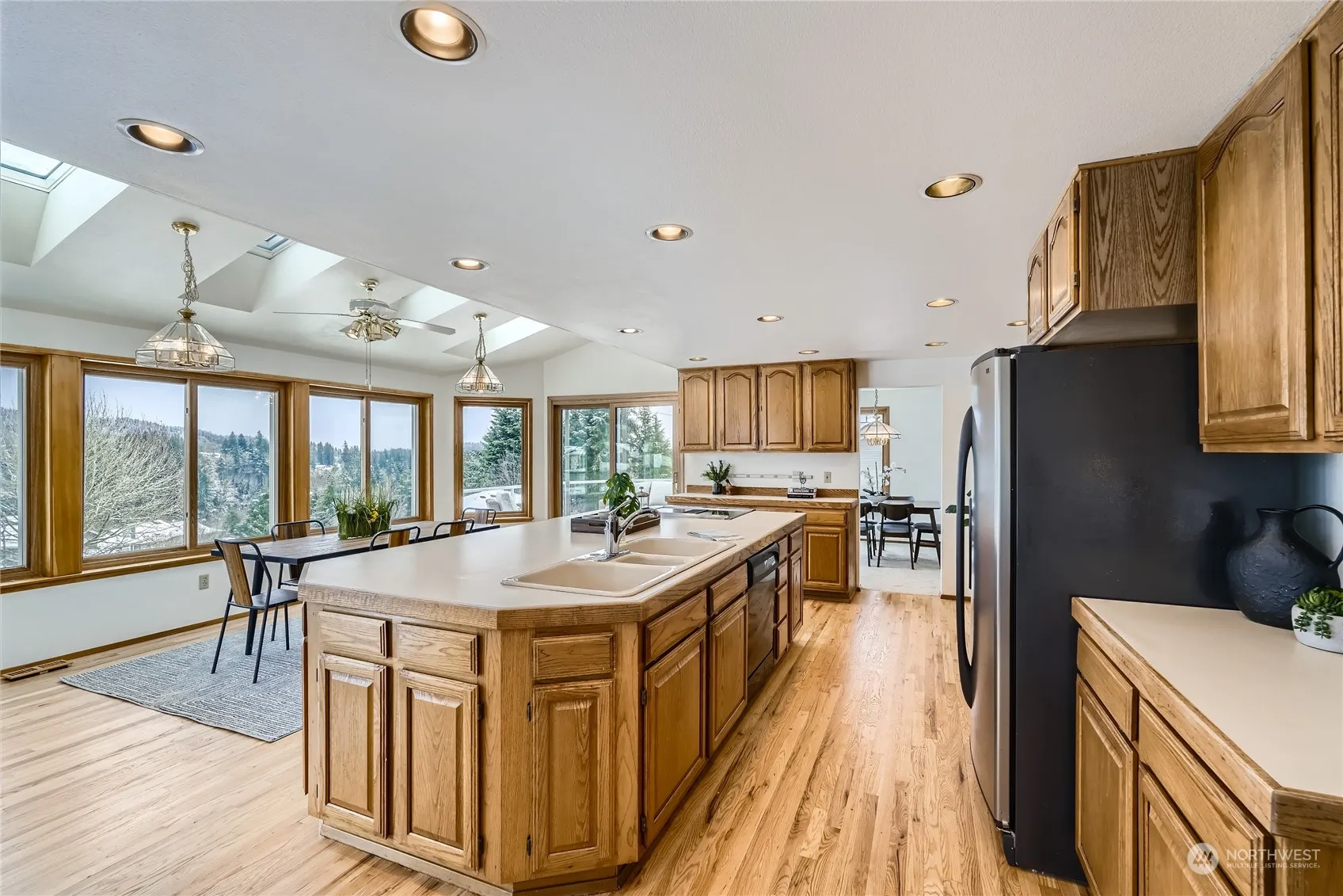 Your dream home awaits in Newcastle’s Olympus community, steps from Boren Park. Original owners! 2,400SF home on a 13,000SF corner lot boasts stunning Mt Rainier & terr’l views. New interior paint & carpet. 4 bdrms, one on main-flr, 3 baths, formal living & dining rms, spacious kitchen w/hdwood flrs, stainless applncs, & lrg island. Adjacent casual dining area w/a wall of windows & a row of skylights, provides access to two view decks. Family rm w/cozy fireplace & large windows. Primary suite offers territorial views, private bath, & W/I closet. Addt’l, 1480SF partially finished basement has 9-10 ft ceilings & separate entrance. Issaquah School Dist. Walking distance to the parks, trails & playgrounds. Awesome opportunity!