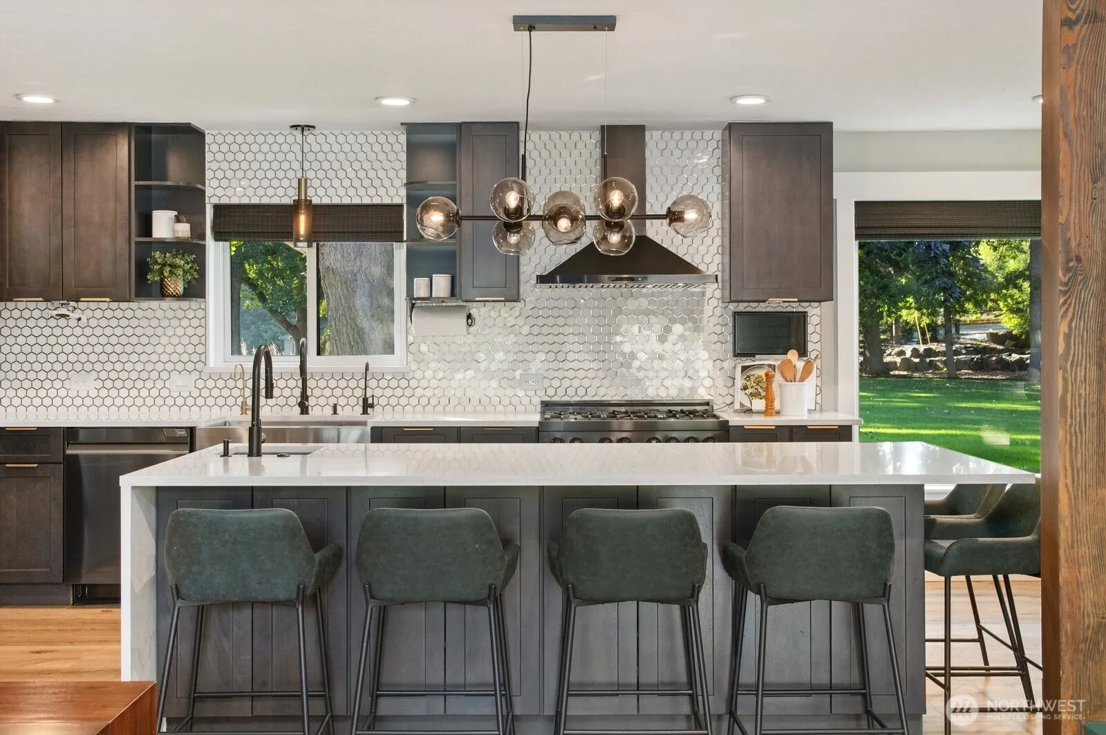 Extraordinary 2.4 acre property mixes modern luxury with a MCM vibe. Carefully updated with new kitchen, baths, flooring, major systems & more – ask for list. Retreat to Primary Suite with walk-in closet, meditation room, spa-inspired soaking tub, and dual-head shower. Entertaining is at the next level in the speakeasy-style basement with wet bar, surround-sound media plus hidden karaoke room. This creek bordered resort-like setting includes pavilion with commercial kitchen, fire pit, hot tub, chicken coop, and garden. Car enthusiasts & hobbyists will love the detached 1,200 SF EV ready shop/garage with full HVAC. Stay fit in the 640 SF gym with ¾ bath. This property offers privacy, luxury, and lifestyle in a truly unforgettable setting.
