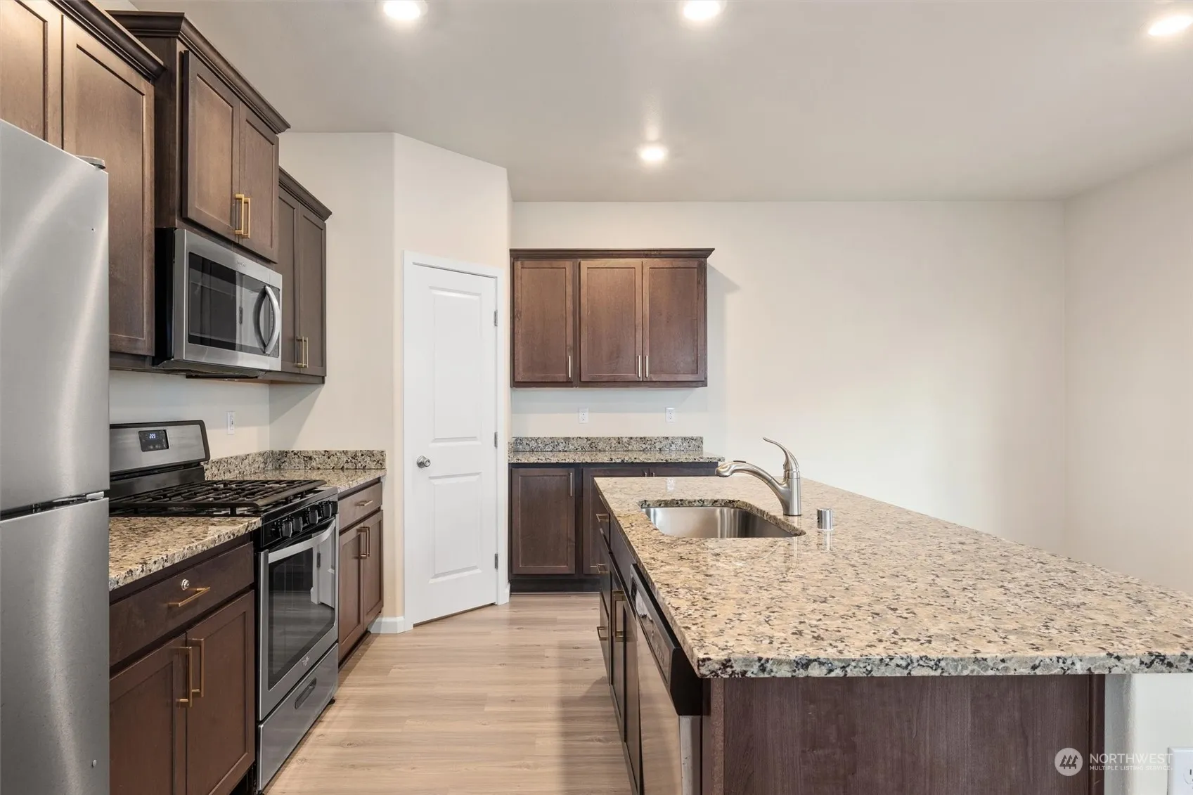 Perfect 5 bed turnkey home in Sultan. Built in 2021 and numerous updates since! Step inside to a warm home that has an open concept living room, dining room & kitchen (w/ large island & walk-in pantry) on lower level. Downstairs includes a home office enclave & powder room. Head upstairs for all the large bedrooms, including 5 pc owners suite. Most rooms have custom California closets recently installed. All appliances stay. Other updates include: Heat Pump (w/ AC), hardware on kitchen cabinets, new carpet downstairs, window coverings, sod in backyard, garden beds & fence stained. Backyard feels surprisingly private. Street parking a nice bonus. Stones throw to the community park w/ sports court, playground & more!