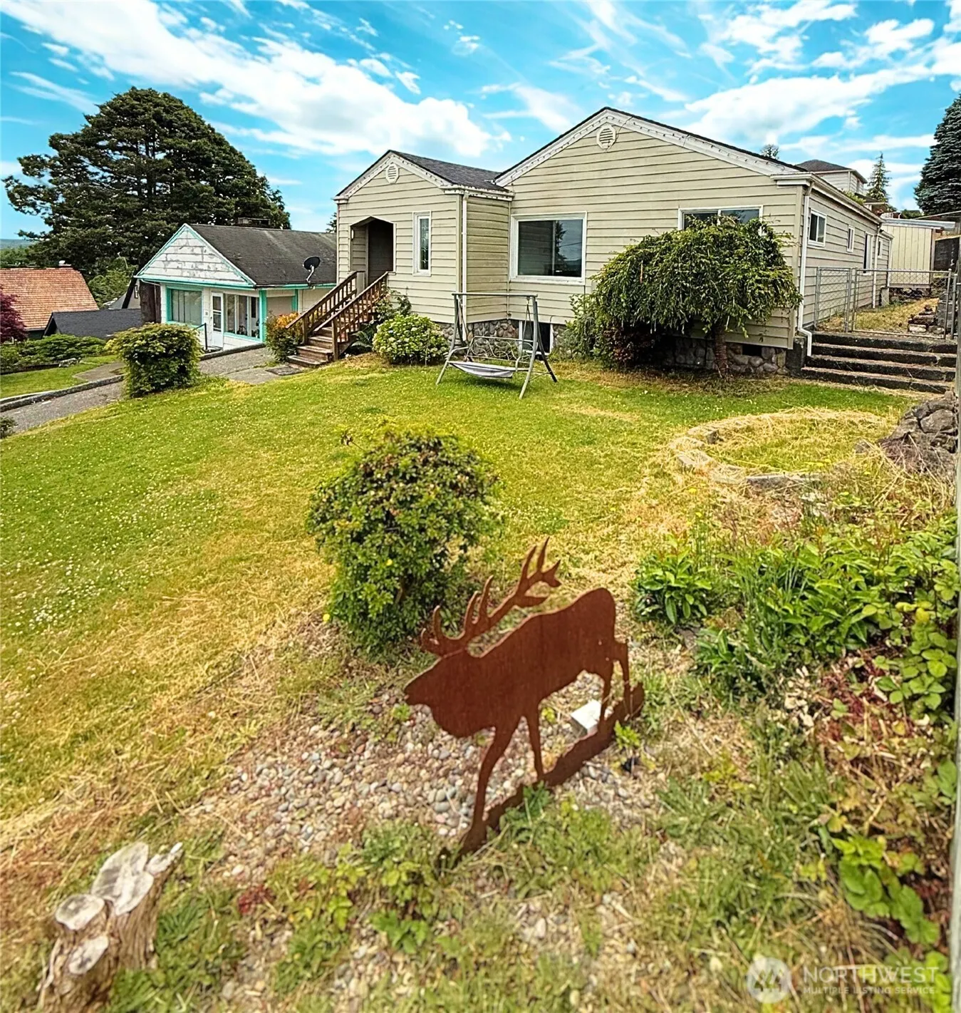Take in stunning partial views of the harbor and city skyline from this beautifully updated 4-bedroom, 3-bath home! Thoughtful touches and modern upgrades are found throughout. The kitchen offers a cozy dining area and stylish finishes. The primary suite includes its own private bath. Over $25K in recent upgrades have been completed in the basement and lower-level bathroom, with additional improvements on the main level to boost both style and function. A detached one-car garage offers extra storage, and the additional back lot features a charming shed—perfect for relaxing, hobbies, or work-from-home space. Charm, comfort, and views all in one!