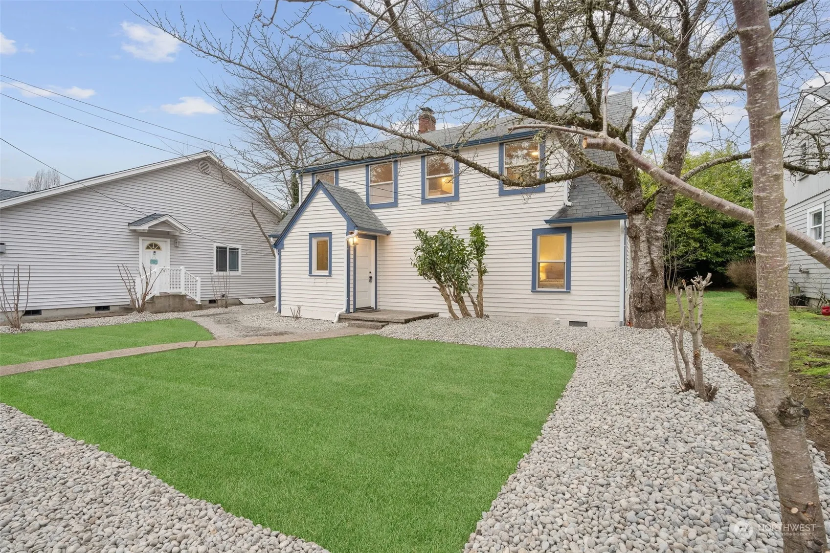 JUST RENOVATED & TIMELESS TOUCHES THROUGHOUT | Beautiful home in the heart of Tumwater! Traditional entryway opens to the living & dining rooms with real pegged wood flooring & herringbone patterns at the corners. Modern updates in vintage styled kitchen w/ white & cappuccino quartz topped cabinets, stainless appliances & checkerboard flooring. Primary bedroom on main floor & two beds upstairs along with a reading nook and a full bathroom on each story. Large laundry room + single car garage w/ storage & utilities below. Huge fenced entertaining space in back with covered porch. Curb appeal is great, new sod just laid! Zoned for multi-use | Great location for business or home! Close to everything Tumwater has to offer.