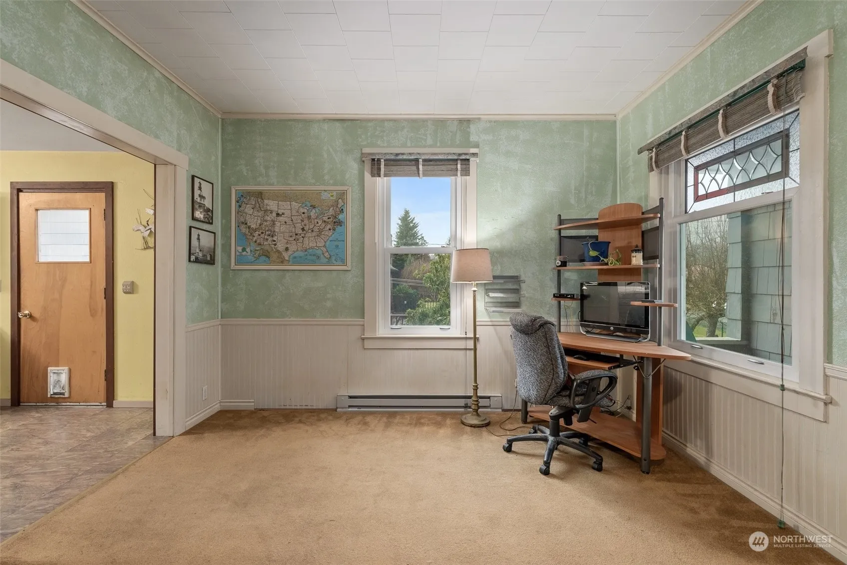 Welcome to this adorable and spacious 2-bedroom home, nestled in a quiet neighborhood on a dead-end road. Conveniently located within walking distance of parks, scenic trails, and the local school, this home offers both privacy and accessibility. Featuring a detached 1-car garage, a welcoming front porch, and a fully fenced backyard, it provides a warm and inviting atmosphere. The living room features plenty of windows, allowing natural light to flow in and brighten the space. The roomy kitchen offers ample space for dining, while the covered deck off the kitchen is perfect for relaxing or entertaining.