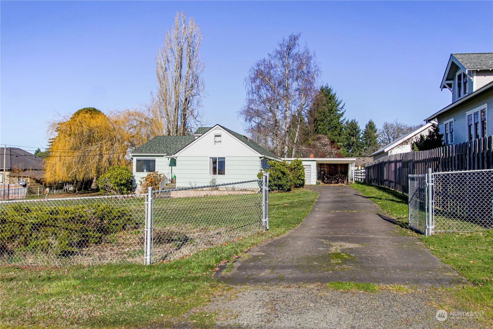 Welcome to this beautifully maintained mid-century home! Situated on a spacious, fully-fenced ½ acre lot with mature landscaping, a small greenhouse and room to garden, this property even offers partial river views! The gated paved driveway leads to a single-car garage with built-in workbenches, plus a carport. Inside you’ll find 3 bed/1.5 bath plus a private office and other useable spaces in the attic. Updates of this home include: New roof in ’17. Gutters and exterior paint in ’21. Bathroom plumbing, tub and shower surround, fixtures, and tile in ’22. New dishwasher in ’23. Heat Pump w/AC and new electrical panel in ’24. This lovely home is perfect for those seeking a mix of vintage appeal and modern convenience with plenty of storage.