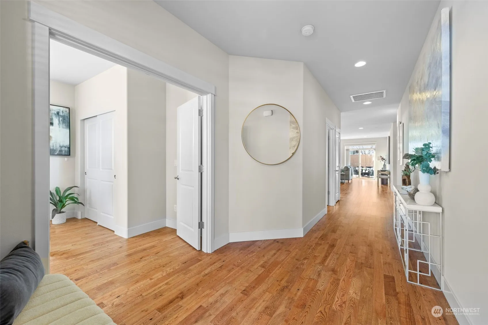 Extraordinary Rambler on spacious corner lot in Snoqualmie Ridge! This customized home has desirable sunlit open floor plan featuring gleaming oak hardwoods and generous kitchen with center island. The great room extends out to entertainment sized deck surrounded by a fully fenced yard plus garden shed. Enjoy oversized bedrooms, bathrooms & laundry room – freshly painted & turn-key. Primary has walk-in closet & large shower. Extras include 2+ car garage, wood blinds, surround sound, A/C & wired for security system and generator. Also meets ADA standards. Check out top rated schools, nearby Swenson Park w/playground, bball & pickleball courts & Jeanne Hansen Park w/ trails, tennis, athletic fields & picnic/BBQ area. Don’t miss this one!