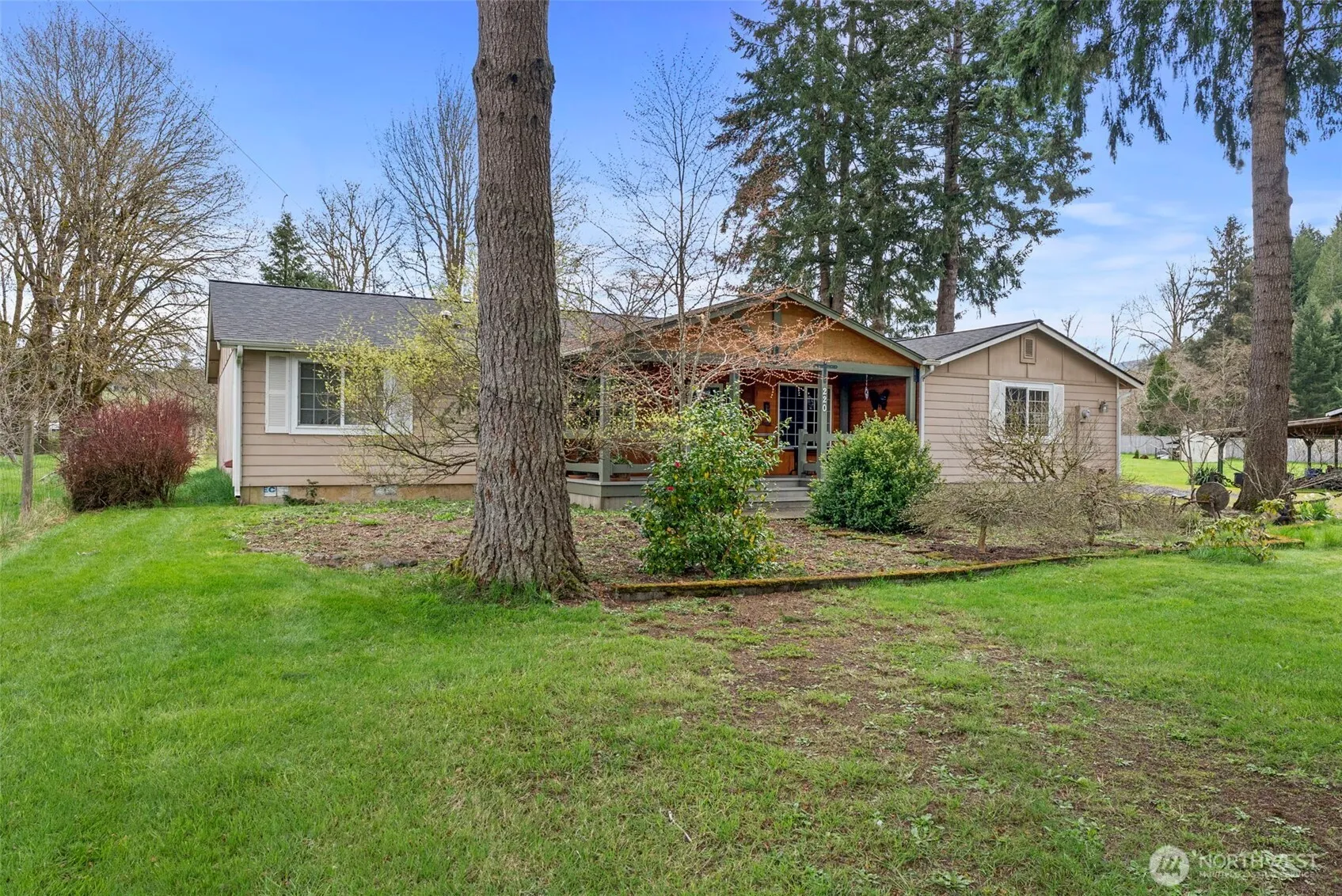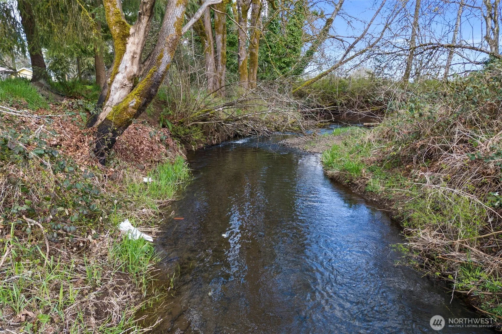 1700+ SQ FT HOUSE. BIG SHOP WITH BATH. LARGE LOT ON CREEK. What more could you want? This well maintained 3 bedroom, 2 bath home is on a large lot with beautiful Stowe Creek in the backyard. No flooding. There is plenty of shop space and covered parking areas for all your toys and hobbies. It has an attached 2 car garage, a 1200 sq ft shop w/220 power, and RV parking. Part of the shop could easily be made into an ADU. It has a propane heater and 3/4 bath already installed. The front yard has large fir trees and mature landscaping that lead you to a beautiful, front porch lined with locally milled old growth fir lumber. The back yard w/patio faces the creek with a high bank. It is level with a mature apple tree and garden space.