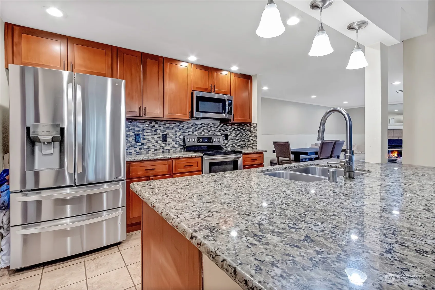 Fantastic opportunity on this move in ready home with 3 bedrooms, 1.75 baths and finished detached space currently a hair salon. Walk in to the updated kitchen w/ large island, updated cabinets and counters, including SS appliances that will all stay for the new owners, walk in pantry, family room and living room with wood burning fireplace for those cozy nights. Bathrooms have both been updated as well. Now find your way out to the huge flat yard over 13,000 sq ft with patio area, room to park boat or RV and finished shed currently set up as a hair salon. So many possibilities to use for small business or fun recreation room with power and water to the space and NO HOA! Washer and dryer will also stay.