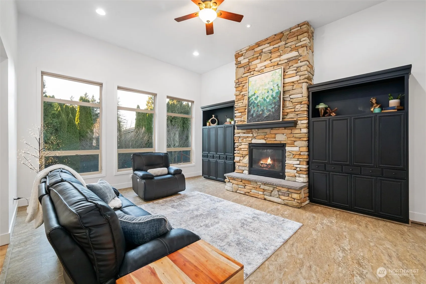 Enter into this immaculately kept home with breathtaking vaulted ceilings, hardwood floors, granite counters & welcoming great room with floor-to-ceiling stonework surrounding the gas fireplace & built-in cabinets. Primary bedroom w/ en-suite bathroom on main level as well as office/bonus room. 4 spacious bedrooms & full bath on upper level flooded with natural light. Lower level has been masterfully finished with a full MIL suite w/ kitchenette + 1 bedroom & additional flex room. Recessed windows give it a warm feeling perfect for additional space or even income! Fully fenced low maintenance backyard gets sun to relax in. Automatic lawn mower setup and will stay! 3 car garage. Ask about buyer bonus to get lower interest rate!