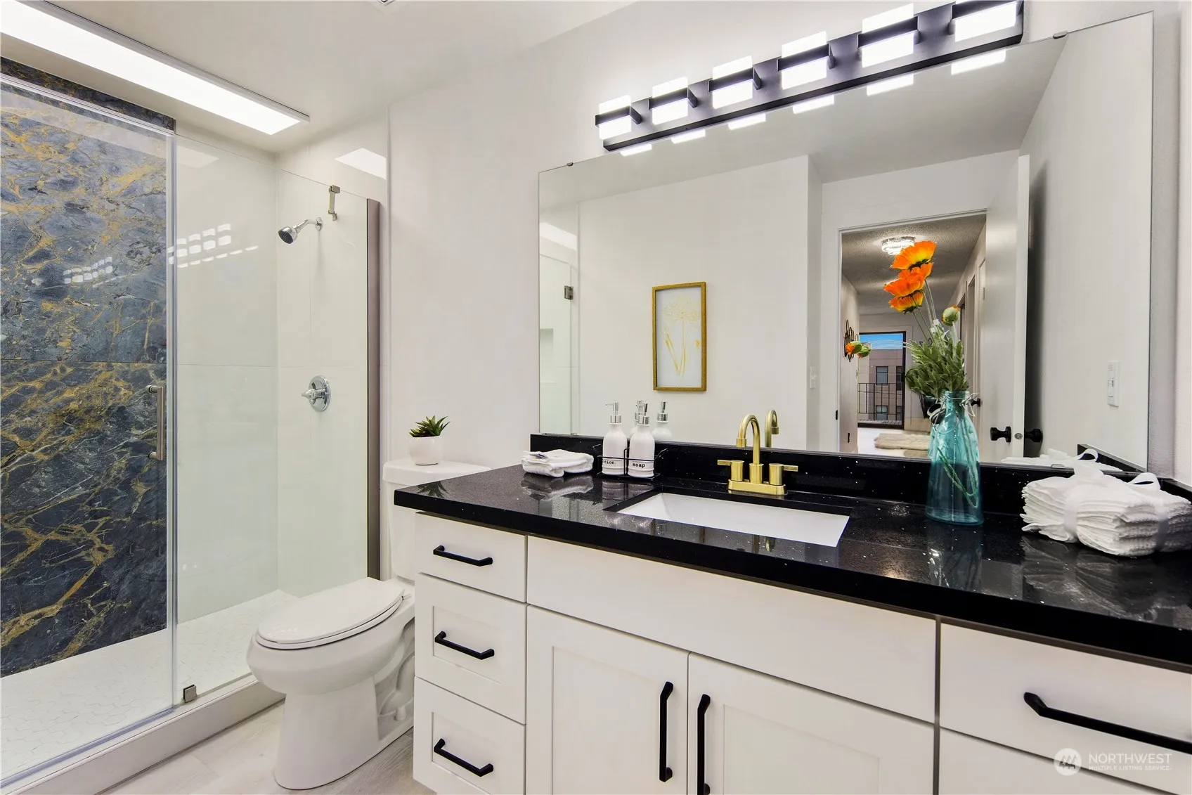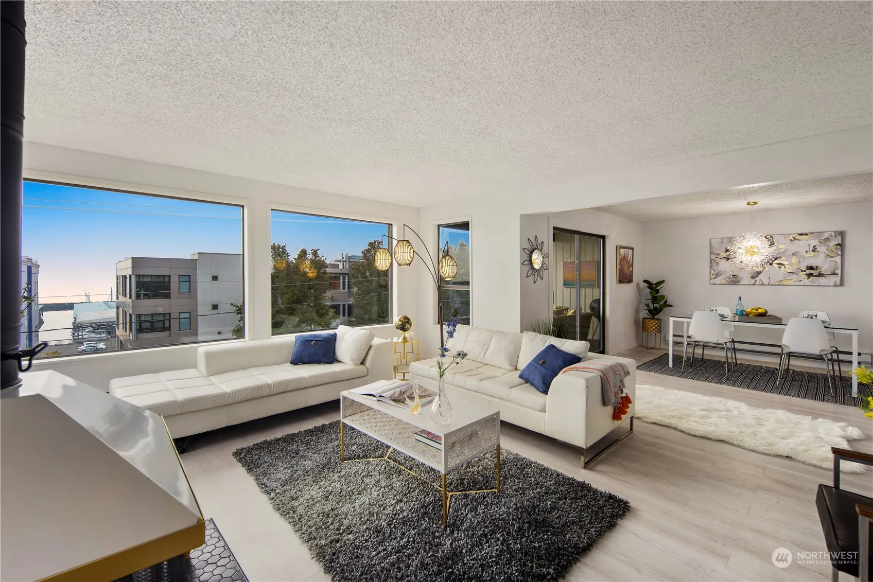 Stunning, top floor corner best unit of the complex. Smell the Marine air & Enjoy water views of the sound, Mt. Rainier form every every room. Walk to the waterfront, fish off the pier, dinner at Anthony’s farmer’s market, music in the park. Commuting to Seattle? Catch the newly added ferry service. Impeccably renovated with you in mind to start living the perfect lifestyle from day One. All designer finishes, kitchen w/quartz ct, soft close cabinets, Top of the line appliances, light fixtures & an epic walk in shower your friends will envy. Bright LR featuring a retro fireplace. catch the most majestic sunsets from your enclosed patio deck/sunroom. Secured building, elevator, Pet Friendly. Join this amazing community for easy good living.
