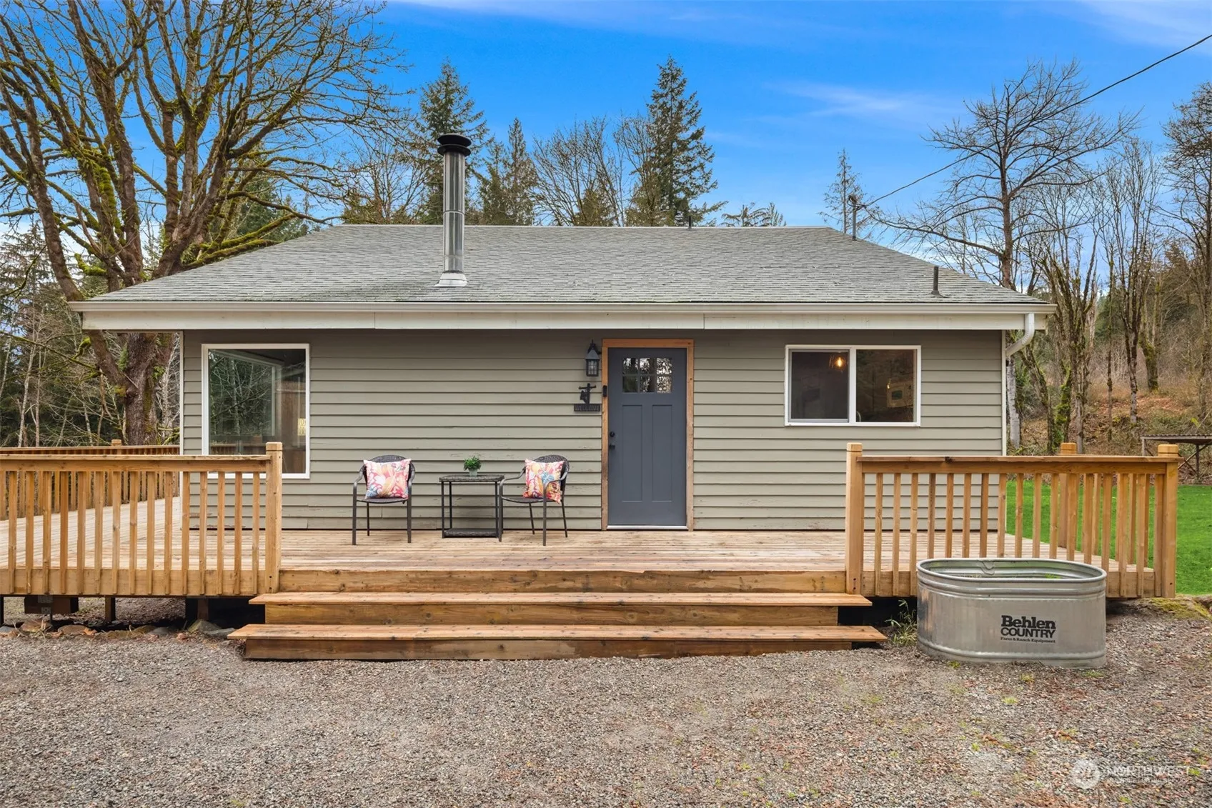 Architecturally striking High Rock residence nestled on 5+ acres of seclusion & privacy. Extensively remodeled throughout, this custom home offers a warm & inviting interior w/vaulted ceilings & large picture windows that maximize natural light to open concept living spaces. Spacious floorplan boasts a newly remodeled farmhouse kitchen, 3BRs including large loft-style primary suite & huge lower level perfect for MIL apt, office or rec rm. Idyllic property features detached garage/shop w/adjacent carport, expansive lawn areas & plenty of room for all your toys. Enjoy territorial views & incredible sunsets from the wrap-around porch & bask in the exceptional privacy provided by this pristine woodland setting just mins from DT Monroe & Duvall.