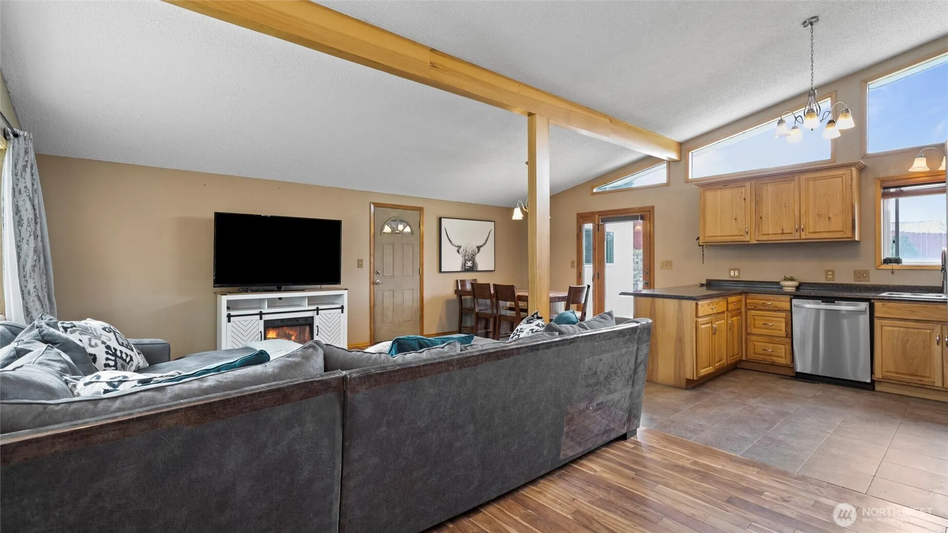 Room to grow, Priced to Move! This stylish, spacious home on the edge of town offers stunning views of the surrounding Blues & wheat fields. Inside enjoy vaulted ceilings, wood floors, and abundant natural light. The open layout is perfect for gatherings, with a spacious kitchen, ample cabinets, and pantry. 3 bedrooms are located upstairs, with a 4th downstairs, and an additional living area and bathroom. The fully fenced, private backyard features a huge patio and terraced landscaping with lots of room for gardens, animals and entertaining! A massive 1,000+ sq.ft. attached garage/shop provides room to park, store, and tinker. Located just 30 minutes from Walla Walla, with an easy commute, your purchasing power goes further in Dayton!