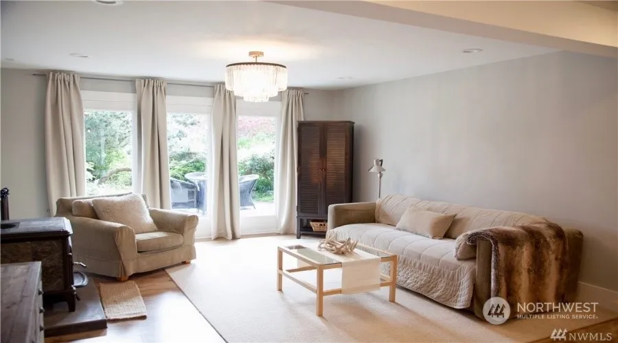 Situated on 5 acres, very private oasis with an updated 3 bedrooms, 3.5 bathrooms home in the heart of Point Roberts. South exposure with all-day sun, enjoy from the balcony or patio overlooking open pasture. Large windows and sets of French doors for brilliant light throughout the home, landscape views from every window. Two levels of living space, each with its own kitchen, beds, baths, and offices. Expansive shed on the north side of the lot. Will not last long.