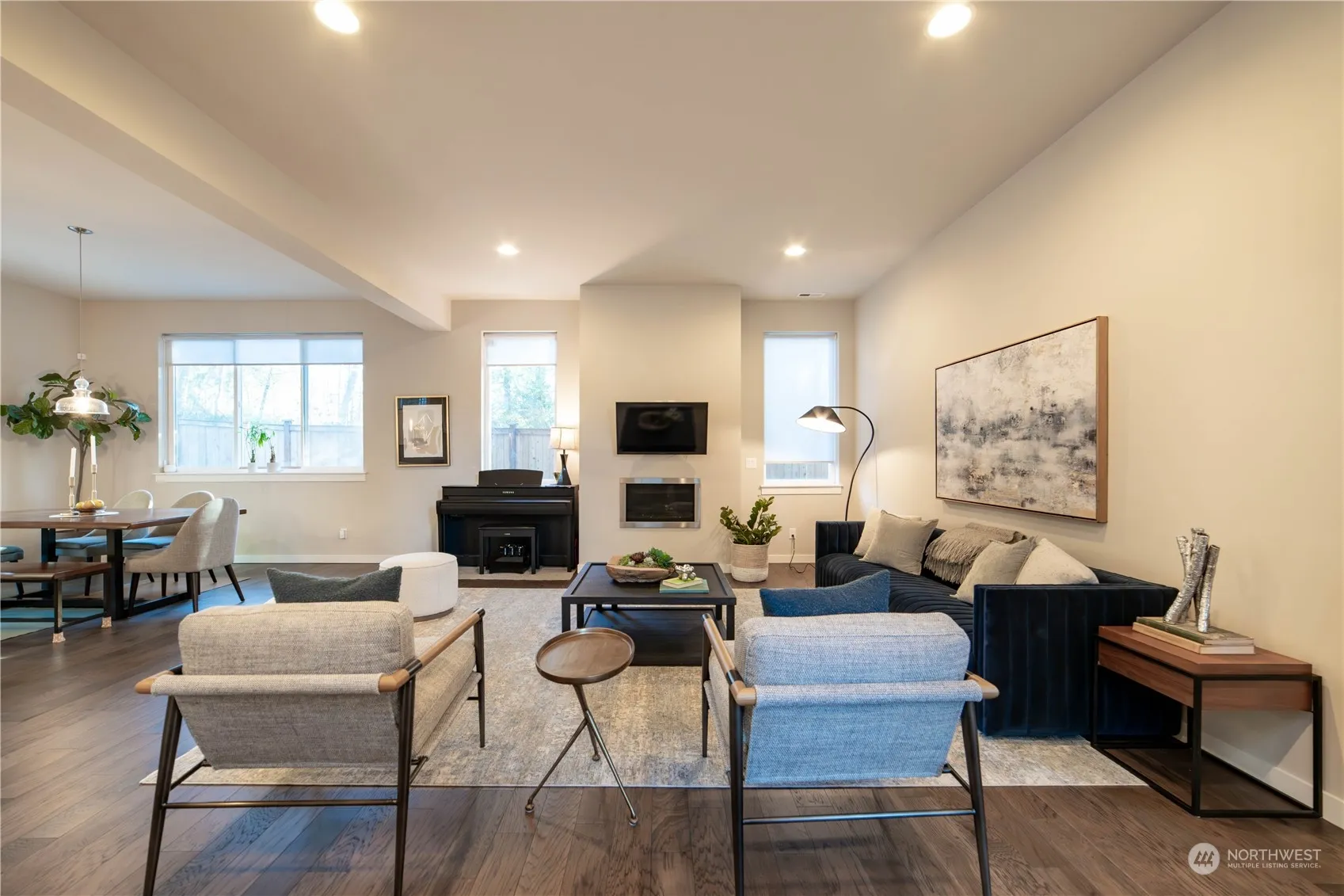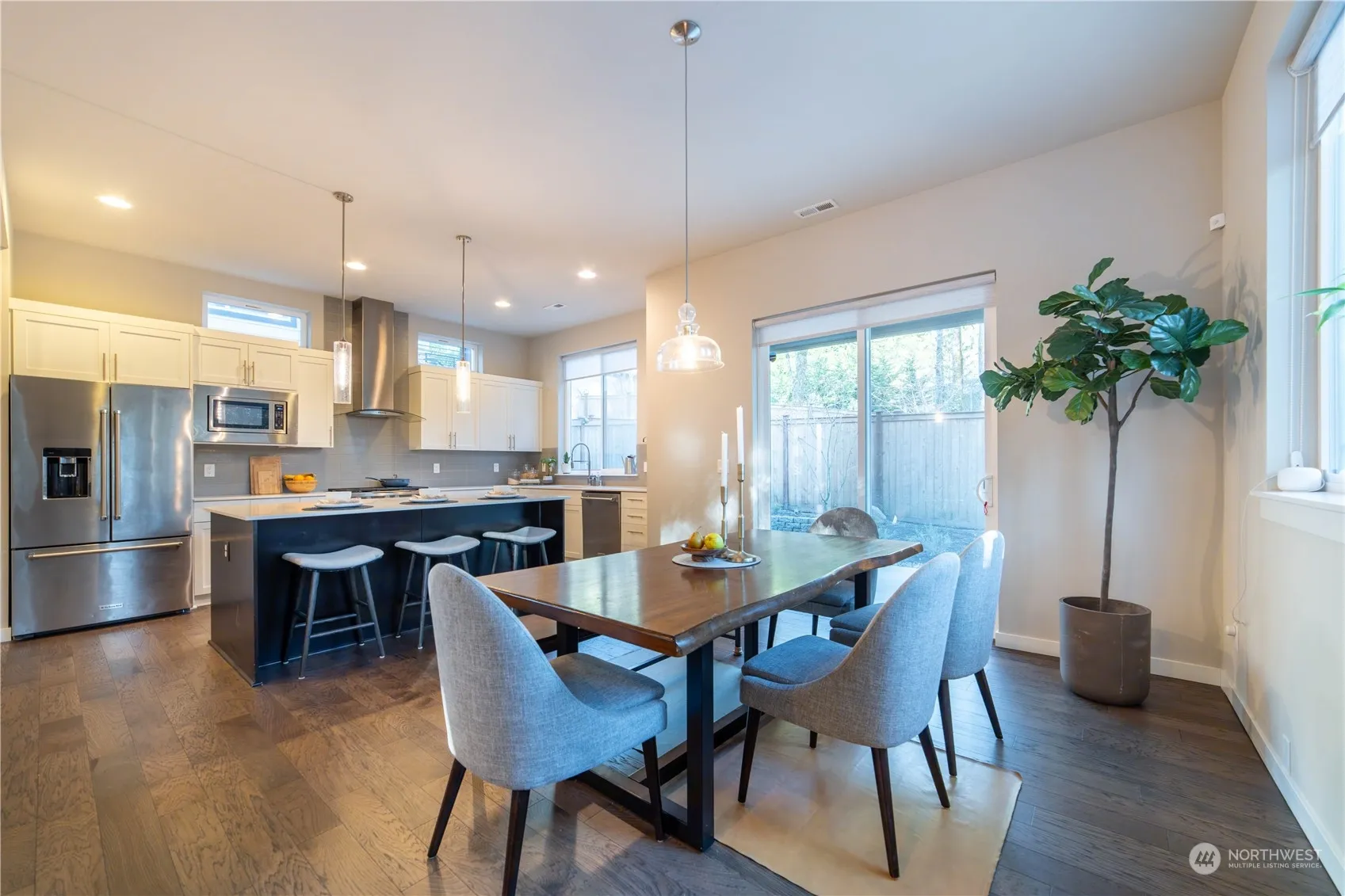 Discover this beautifully designed Taylor Ridge home, offering privacy and serene greenbelt views. A chef’s dream, the expansive kitchen boasts a large island, quartz countertops, and premium stainless KitchenAid appliances. Great room design features sunlit interiors feature soaring 10′ ceilings and hardwood floors. The upper level includes a spacious primary suite with a five-piece bath & slider to deck. Two additional bedrooms, and a full bath, with loft to use as an office/play area. Upstairs laundry room. Fully fenced backyard. Two-car garage w/EV charger. Close to parks, trails, and top-rated Issaquah school district. A/C, sprinkler systems and whole house surge protection.