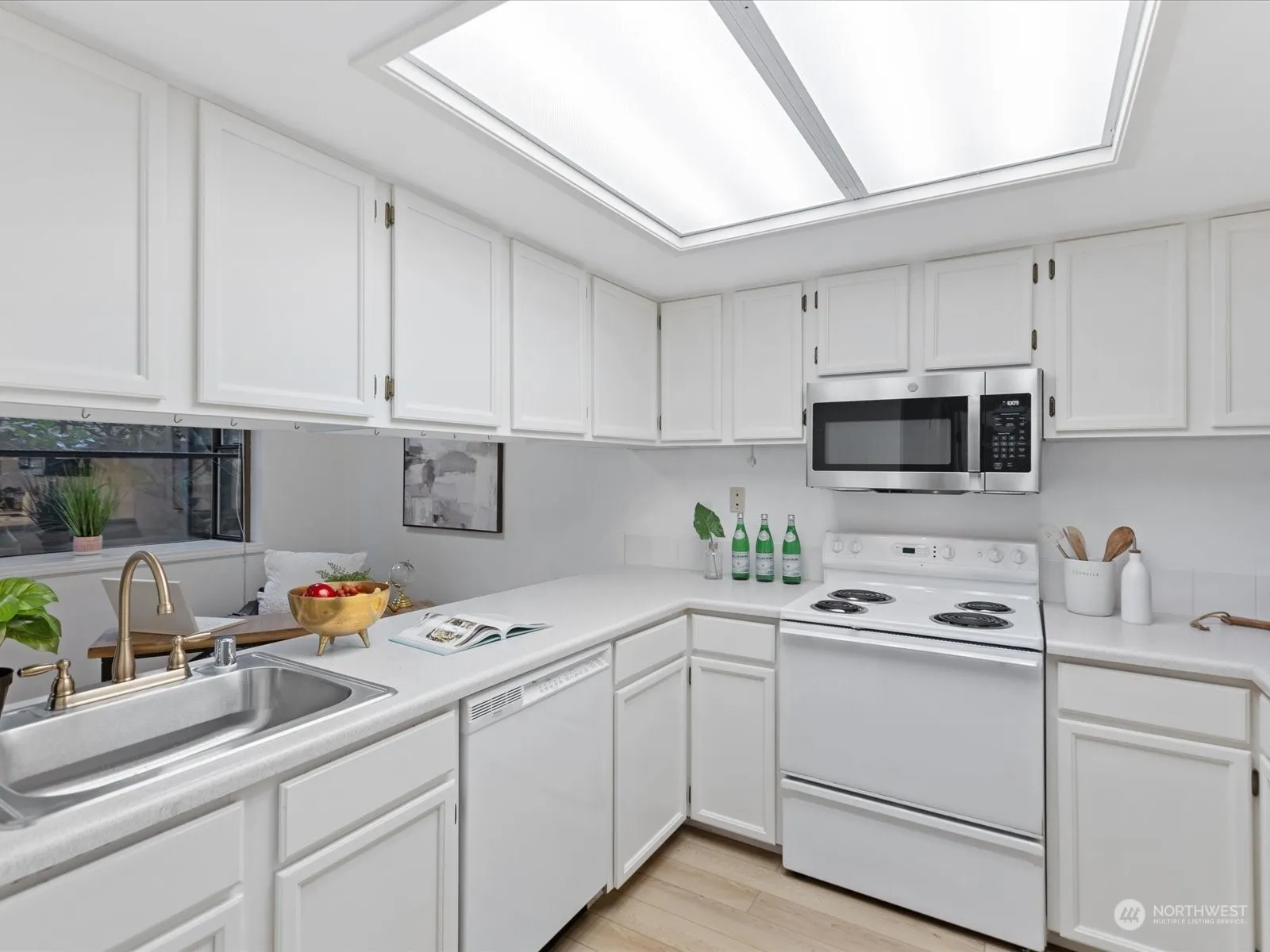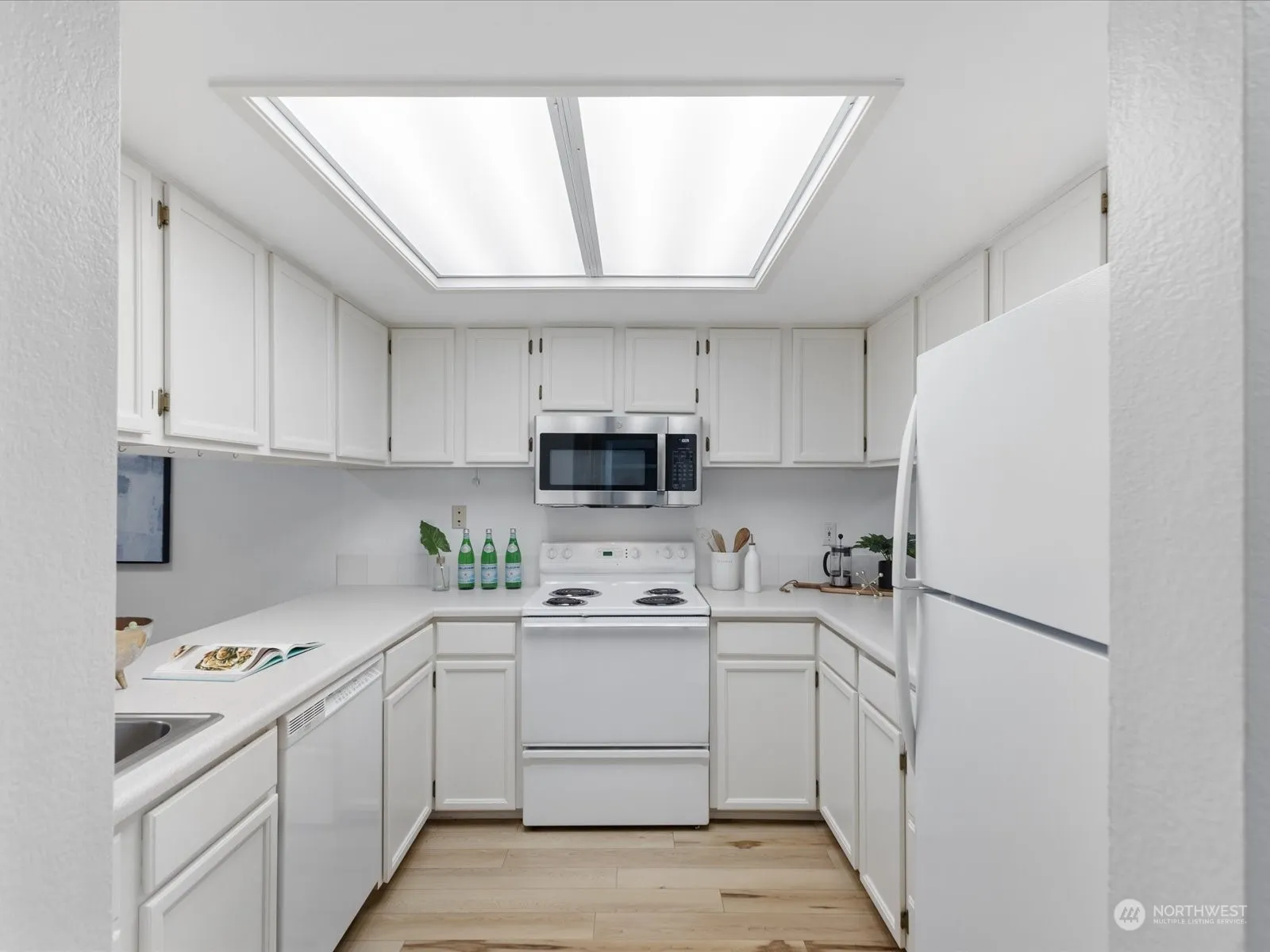 Beautiful ground floor condo, in great condition & ready to enjoy. The location is excellent, next to Lake Ballinger & park, convenient to freeway access & a mile from the MLT Light Rail Station, opening this summer. You’ll love the exercise room, pool, athletic court included the complex. The home features an open floor plan with inviting living room, cozy fireplace, pleasant dining room, covered patio. The kitchen has generous work space & cabinetry & is open to the dining room and great office with garden window. The primary suite is luxurious, w/large bedroom, doors to the patio, double closets, full bath. Beautifully updated guest bath, large second bedroom, laundry room, generous storage, private garage, second reserved parking space.