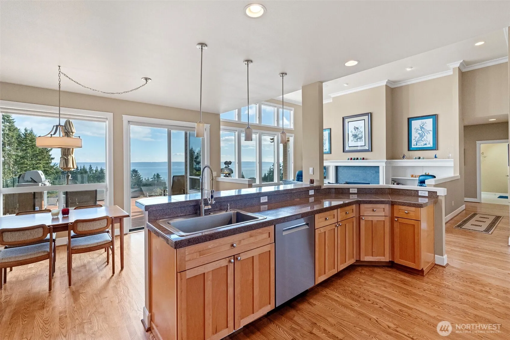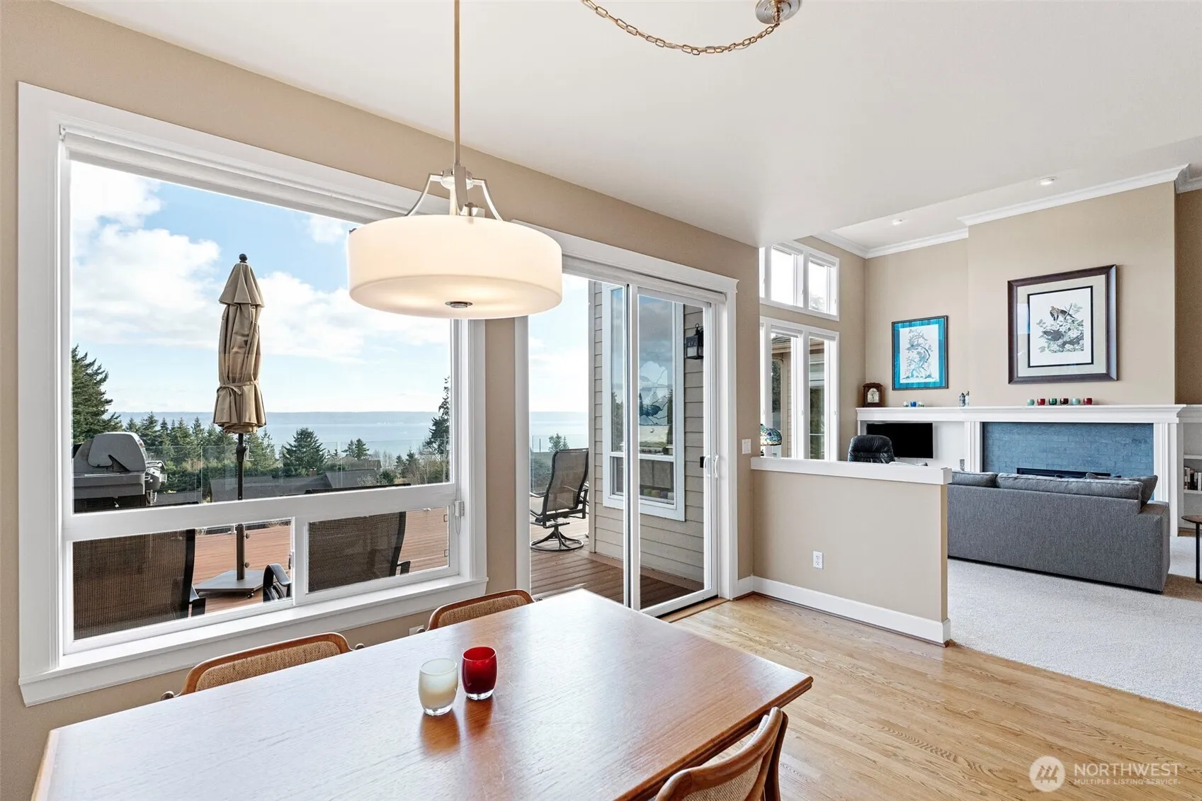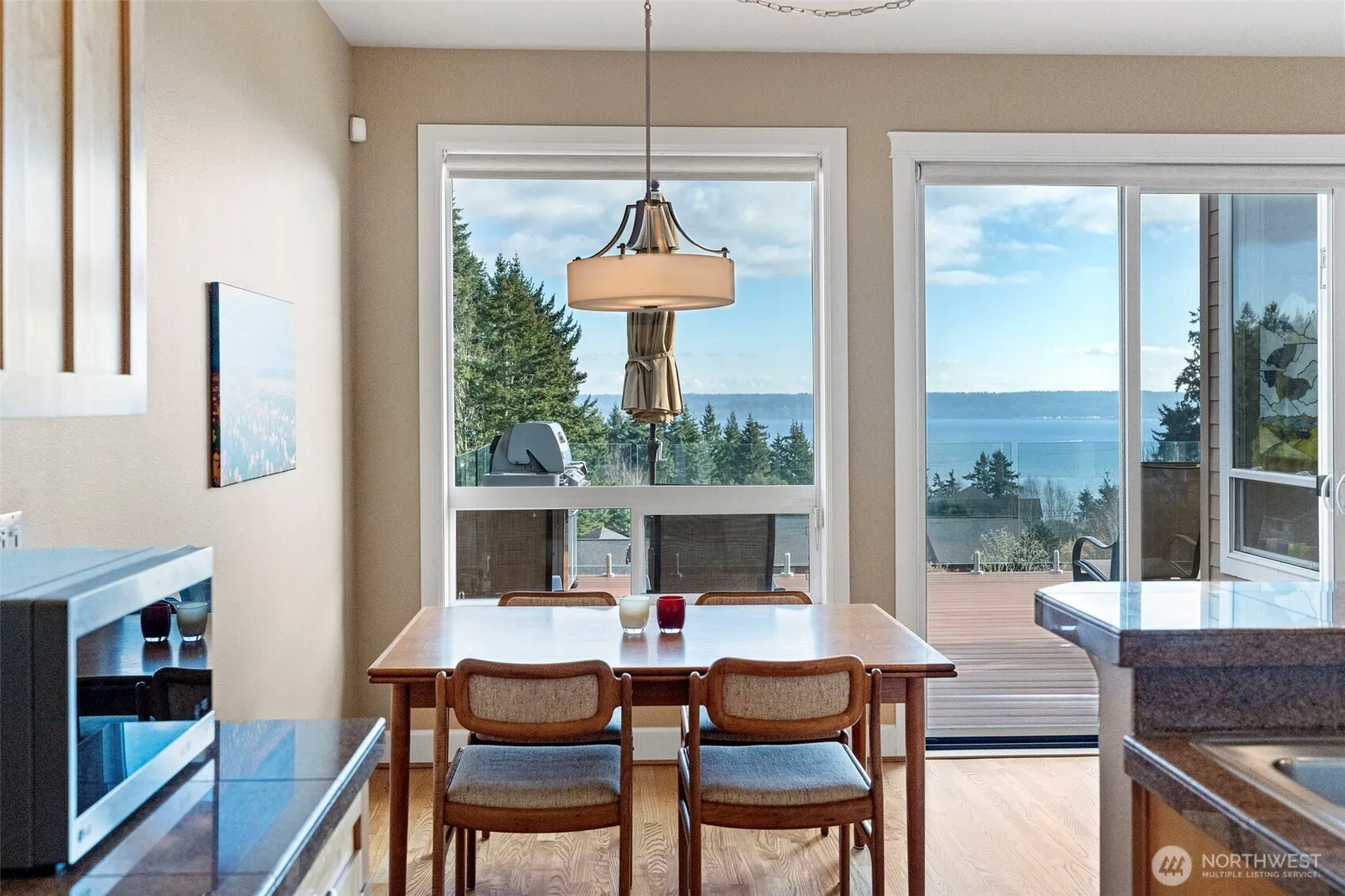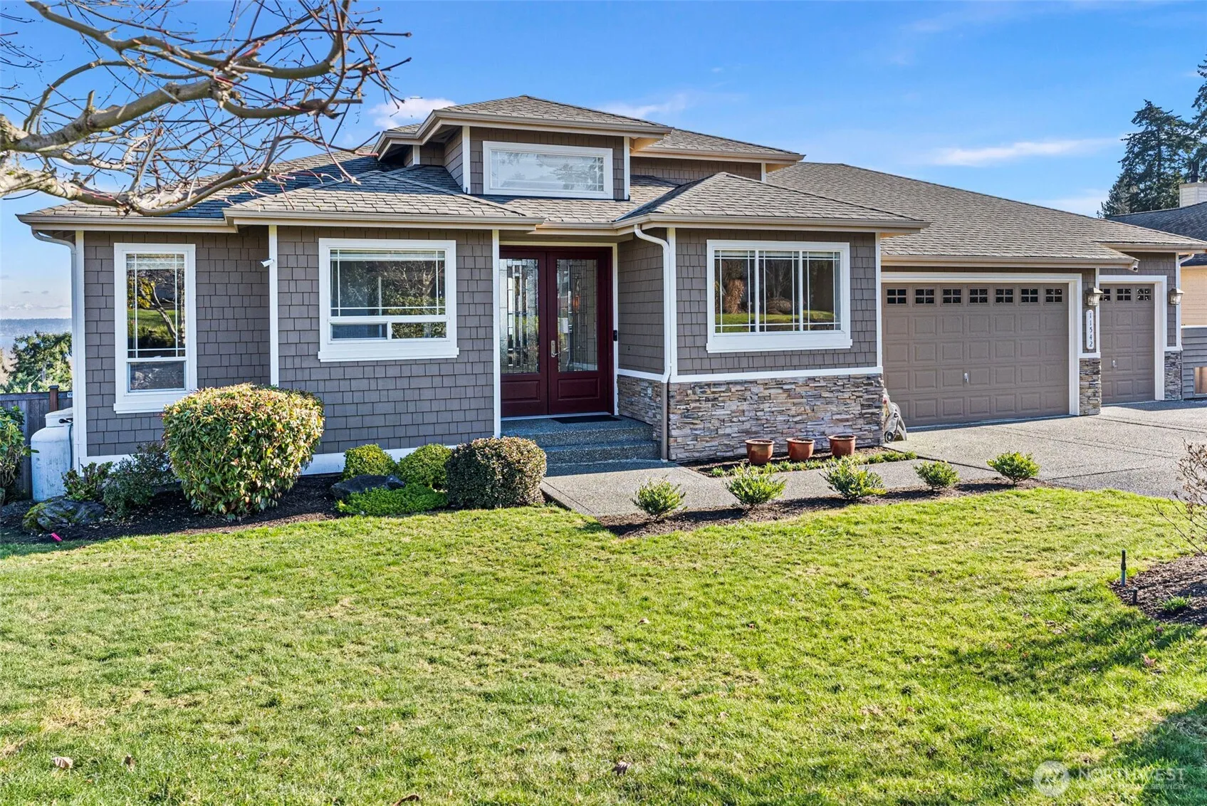 Beautiful, bright, and spacious! Fall in love with this well-maintained home featuring breathtaking Puget Sound and Cascade Mountain views. Move-in ready with gorgeous finishes throughout. The primary suite boasts stunning water views, an ensuite with fully updated walk-in shower, cabinets, granite, heated floors & more. Entertain on the brand-new deck with frameless glass railing. The lower level offers a private retreat with 3 bedrooms, a full bath, and a cozy living area, all with incredible views. A meticulously manicured backyard oasis, blending elegance w/natural beauty. A true retreat. Whole house generator plus many home upgrades. Minutes to the ferry and amenities. This spectacular home is stunning inside & out!