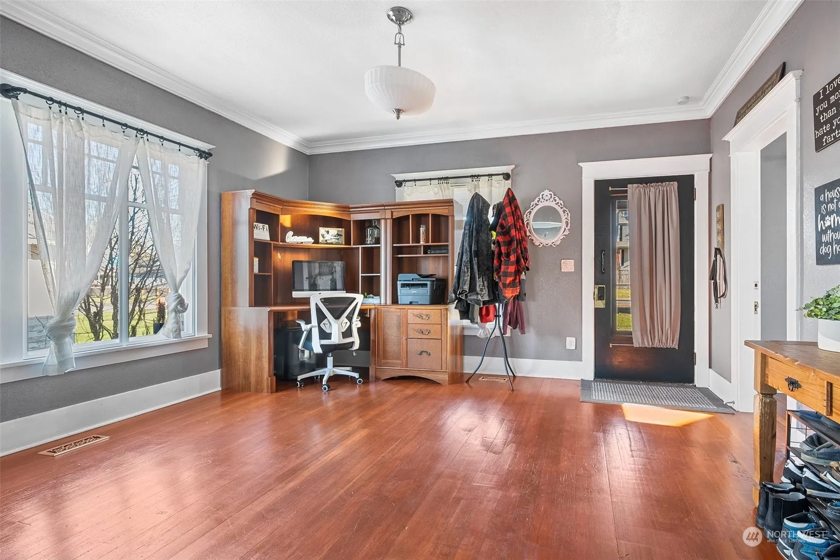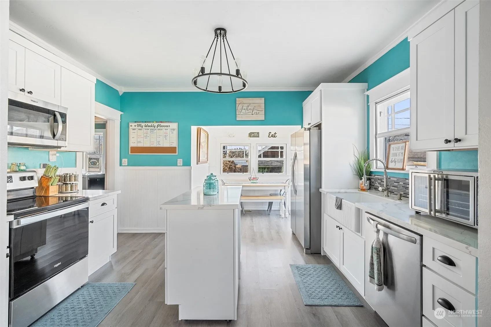 Beautifully renovated 1920s Craftsman blending vintage charm with modern updates. Thoughtfully upgraded with a new electrical panel and wiring, PEX plumbing, vent and drain pipes, water meter, waterline, roof, gutters, front porch, back steps, and updated insulation. The kitchen features quartz countertops, stainless steel appliances, white cabinetry, a farm-style sink, and high-end vinyl flooring. The bathroom retains its classic appeal with a clawfoot tub, penny tile, and beadboard walls. A new HVAC system ensures year-round comfort.