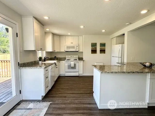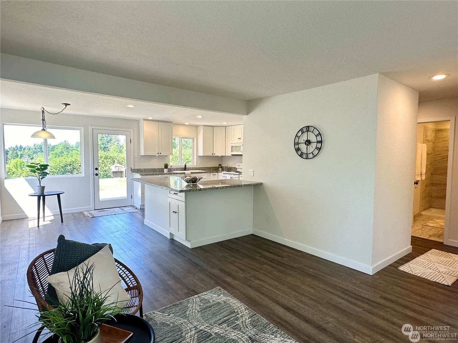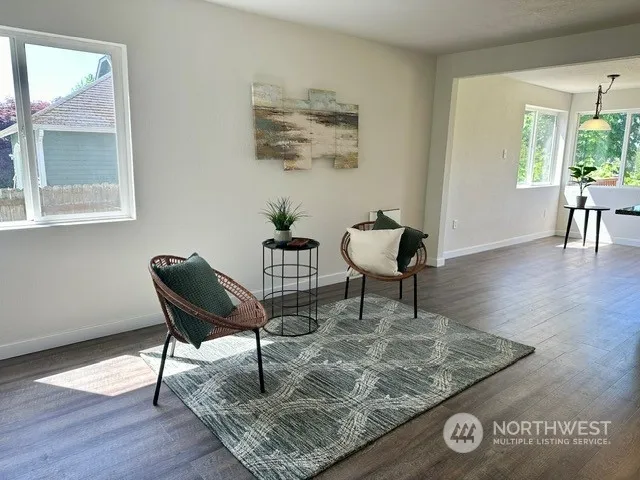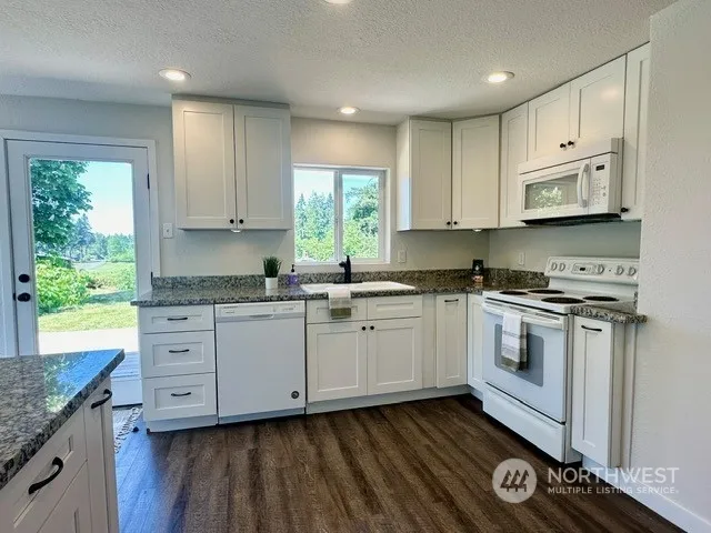 Welcome home! Watch beautiful sunsets from your home and porch every evening with views of large green backyard and neighboring pasture. Adorable turnkey home with well-designed layout. Open concept living space and kitchen w/dining bar for easy entertaining. New Roof in 2024! Two bedrooms and one 3/4 bath. Granite countertops, LVP floors, tile in bathroom and shower surround. Energy efficient convection heating throughout home. Central laundry closet w/stacked W/D. Cute 10×12 shed for storage, work space, gardening. Large level lot, great sunsets with back deck and yard facing west, front of home faces east. Easy commute to 512, hwy 18, and I5. Don’t miss this one!