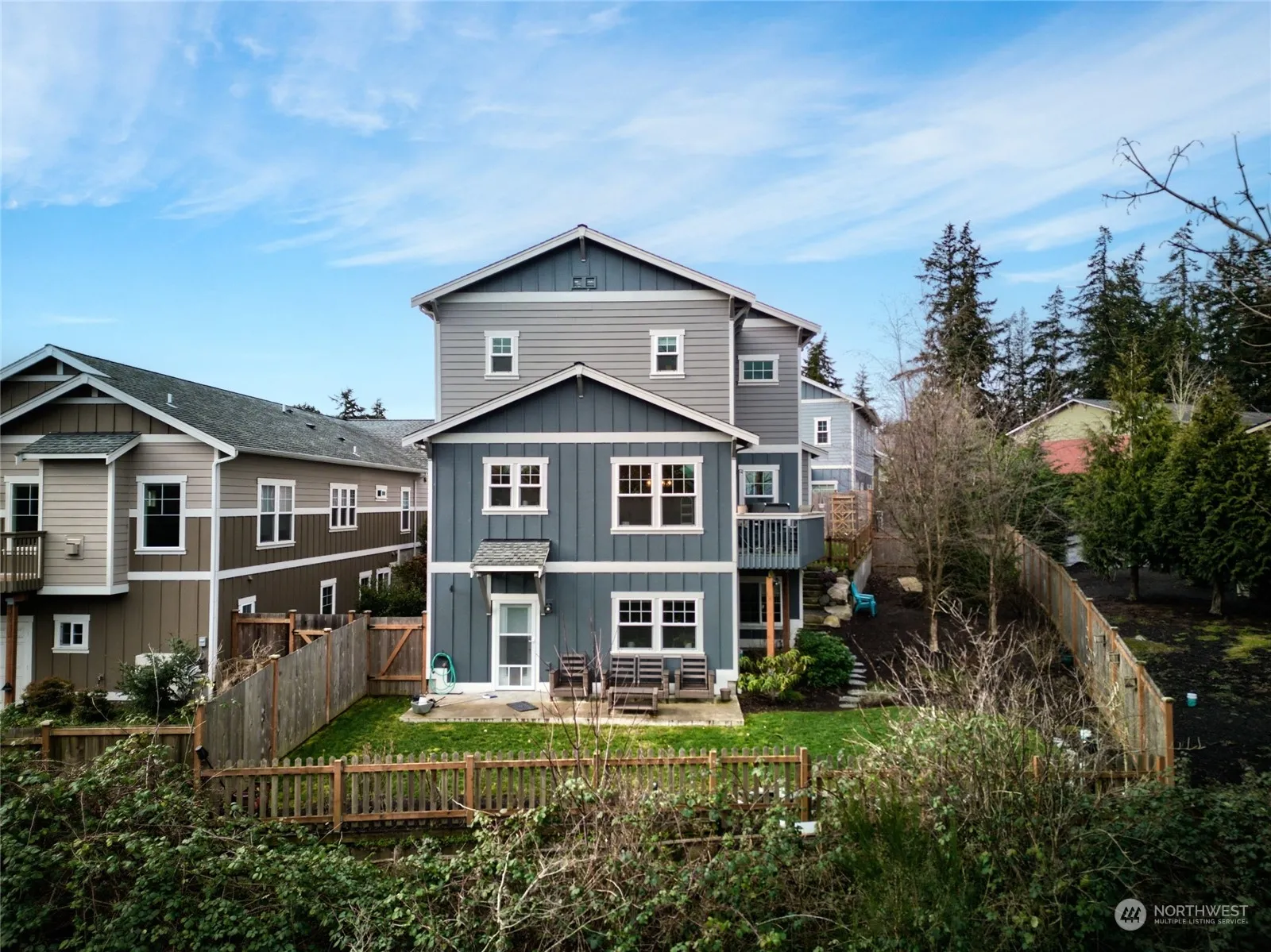 Need room? Appreciate quality? This modern beauty has it all. Nestled in the Whistle Ridge Neighborhood w/filtered bay views, this home sparkles w/features sure to please. Open concept w/ detailing on ceilings, AC, stone gas FP, expansive Kit w/solid surface countertops, gorgeous cabinetry & SS appl. A Lg bath w/tiled shower & bedroom on the main makes for a perfect guest rm. Upstairs features primary suite w/ dreamy walk-in closet, spa like bath w/dual shower heads & jets, laundry rm, addtl bedroom & full hall bath. Downstairs you will find the ideal living space w/large Rec Rm w/bar sink & outside access, abundant cabinetry, bedroom & full bath. Close to Whistle Lake & trails. Lg fenced backyd backs up to Native Growth Protection area.