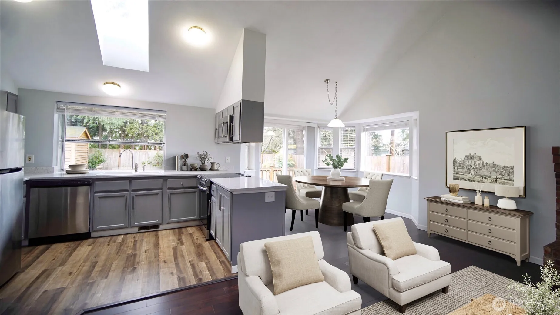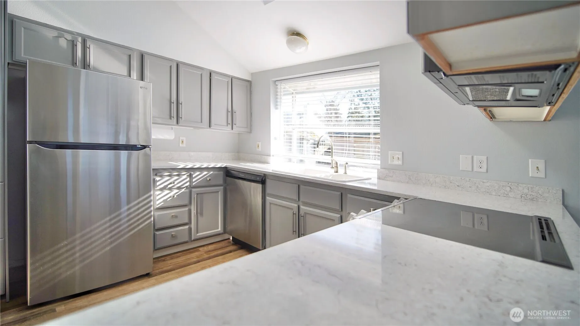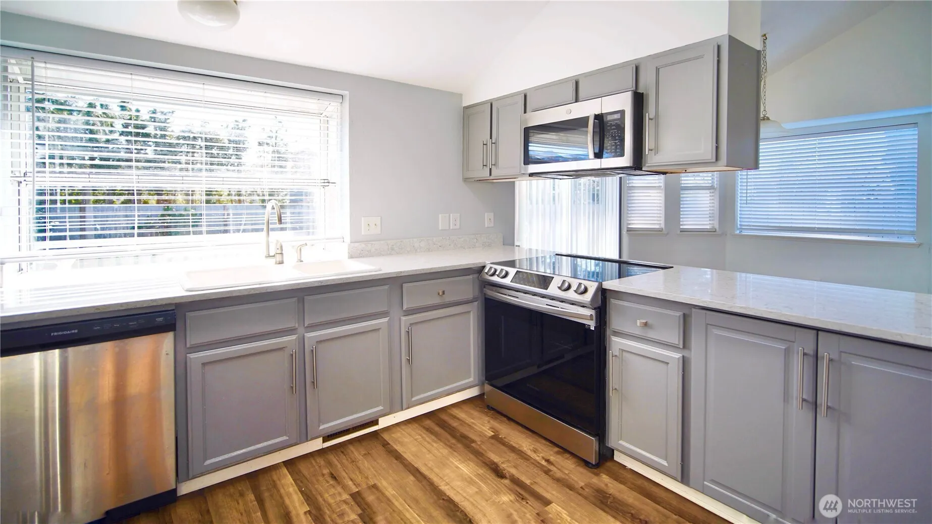 *Adorable rambler framed by a Cascade mountain landscape nestled on a generous level lot awaits lucky Buyer!* Home features a truly light & bright open floorplan accented w/hardwoods,vaulted ceilings & the special upgrades you’re hoping to find. Greatroom includes wood burning fireplace w/craftsman brick surround & new energy efficient insert.KIT upgrades include new appl, quartz counters+new cabinetry,XL pullouts+drawers.Primary suite w/full bath,dbl closets. 2 more BDRMs + full bath!Private fully-fenced backyard w/massive slab patio & year-round full sun. HUGE detached 12×16 shed included. Newer vinyl, ext paint,carpet,vapor barrier+insulation, NEW blinds! Roof is 10 yrs young. XL 2-car garage w/shelves,xtra storage.Covered front porch!