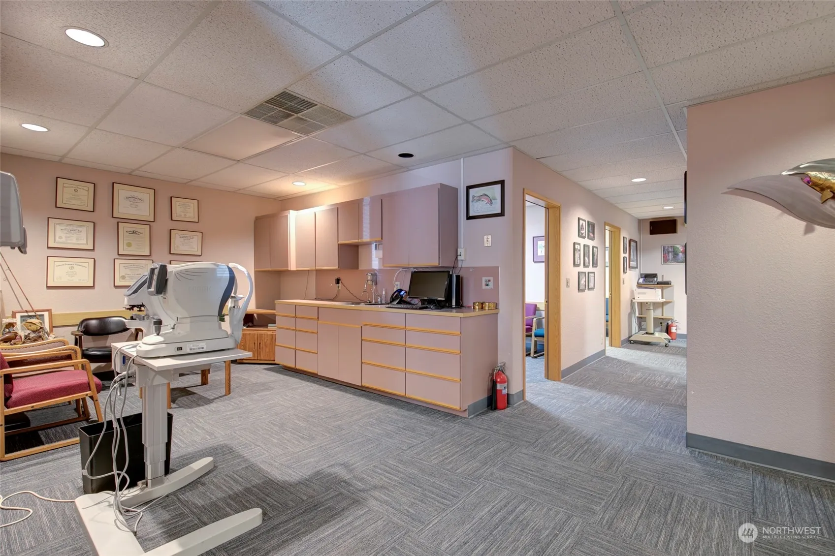 Fantastic opportunity for your business! This 3,120 sq. ft. former ophthalmologist’s office is ideally located on a busy thoroughfare, ensuring excellent visibility and accessibility. Designed for medical use but versatile enough for various professional needs, it features a sunny reception area with skylights and restrooms, multiple exam rooms, a private office with a 3/4 bath, a break room with a kitchenette and 1/2 bath, and spacious upstairs storage. Situated on a corner lot with ample parking, this property offers the perfect blend of functionality, convenience, and high-traffic exposure.