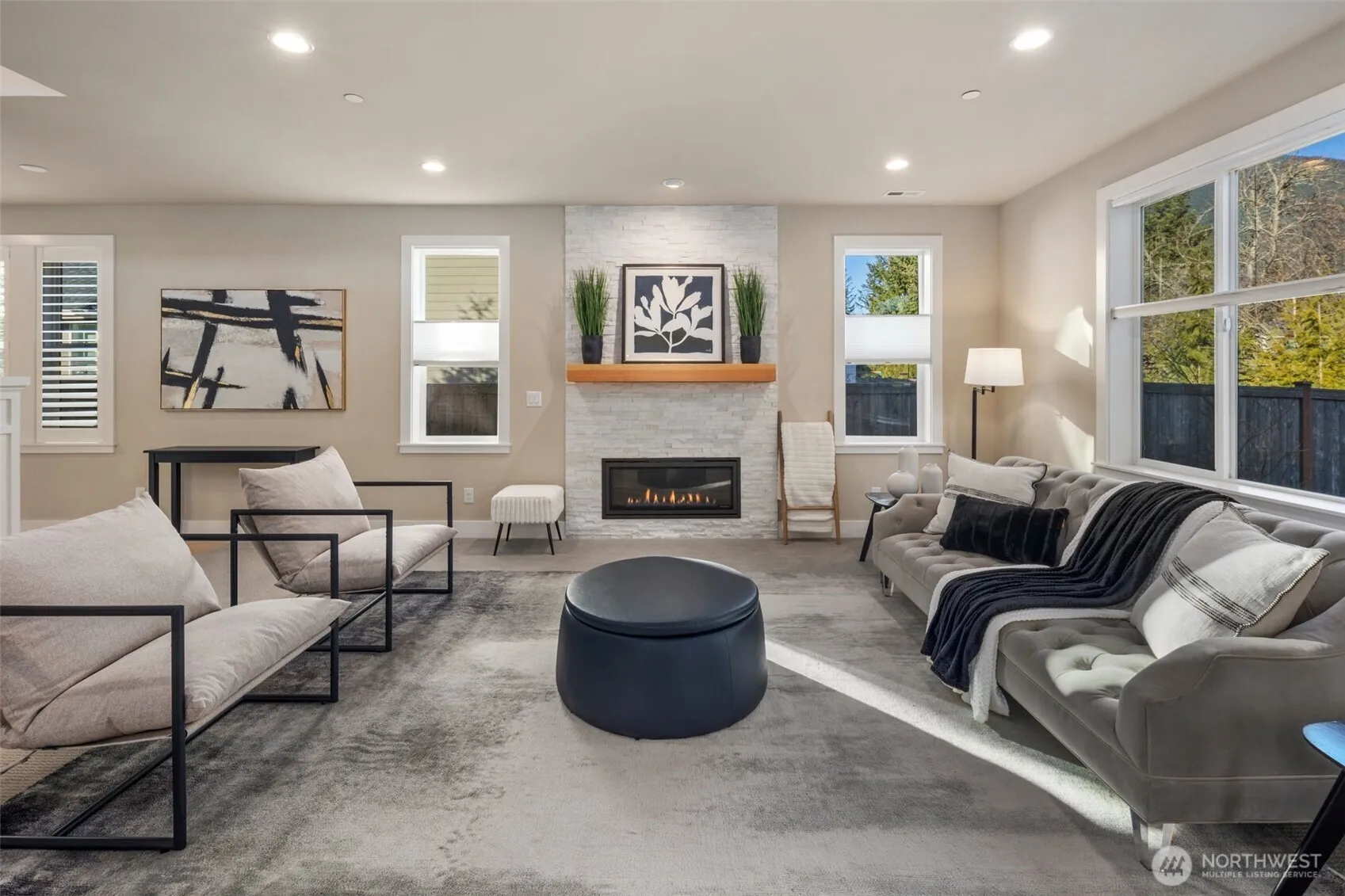 Nestled in the sought-after Cedar Falls community of North Bend, this better-than-new home blends luxury and tranquility. Backing to a lush greenbelt, it offers a rare sense of privacy. Inside, high-end finishes, custom blinds, and designer touches create a warm, inviting feel. The gourmet kitchen flows seamlessly to the living and dining areas, perfect for entertaining. A main-floor bedroom and bath add flexibility, while the primary suite features a spa-like retreat with an oversized shower and soaking tub. Close to parks, trails, and charming downtown North Bend, this home offers the perfect mix of nature, convenience, and community.