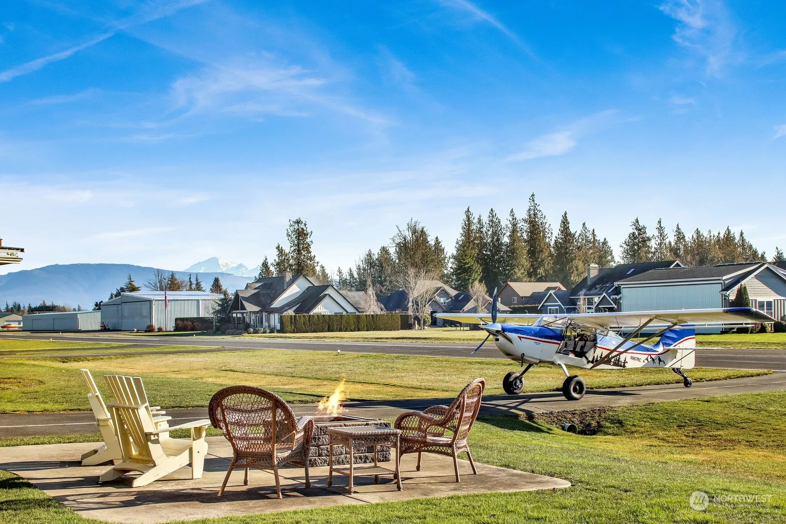 Every Pilot’s Dream! Live the ultimate aviator lifestyle with this meticulously maintained home on the Lynden Airport with direct access to the runway & a 54×32′ airport hangar with a 38′ Schweiss bi-fold door. Enough room for a plane + a boat or trailer. Inside enjoy the warmth of a great room with vaulted ceilings, gas fp, a spacious kitchen with maple cabinets, composite counters, bonus room + loft, & a luxurious primary suite with a corner jetted tub, walk-in closet, walk-in shower, & double sink vanity. Additional perks include an extra-deep garage, rat slab, compressed air lines, AC, central vac, wired for a generator, RV dump, + in-ground irrigation. Fly to work or explore the skies-this is the dream home you’ve been waiting for!
