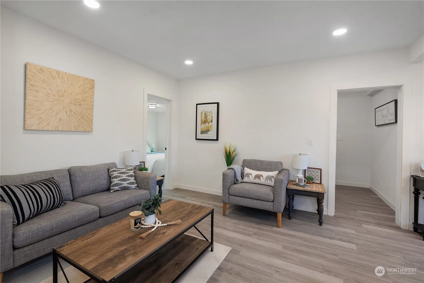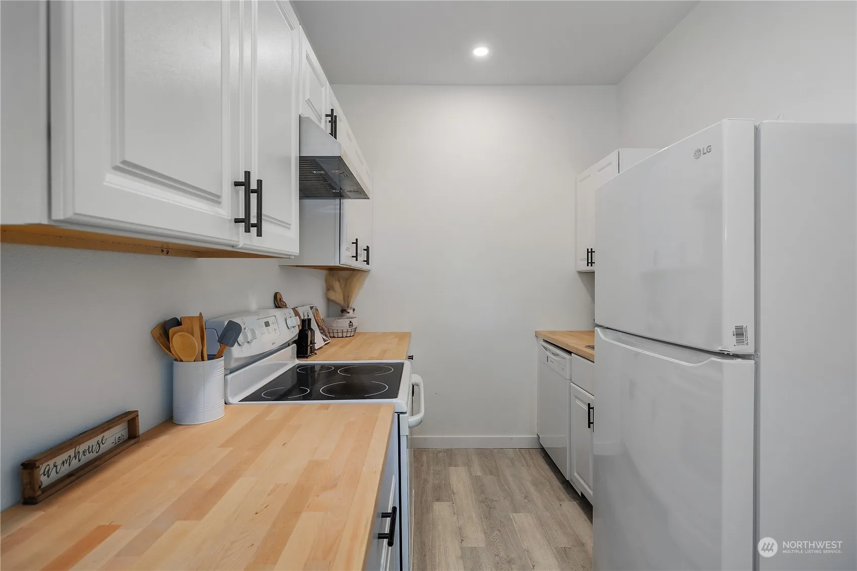 FULLY REFRESHED! – 1,008 sq ft – 3 bed, 1.75 bath home on a .157 acre corner lot. Yard is fully fenced, detached fully enclosed carport/garage. Large backyard with paver pad for entertaining. Covered front patio with space to lounge. Primary bedroom includes full bath ensuite. Centralized living/dining room with .75 guest bath. galley kitchen with butcherblock countertops on new cabinets w/ new stove, hood, fridge & dishwasher. Separate enclosed room for laundry leads to the back yard. Additional improvements include a recently installed composite shingle roof, fresh exterior paint, newly installed flooring, updated hardware & finishes throughout the home. Modern breaker panel & vinyl windows. In the heart of Elma.