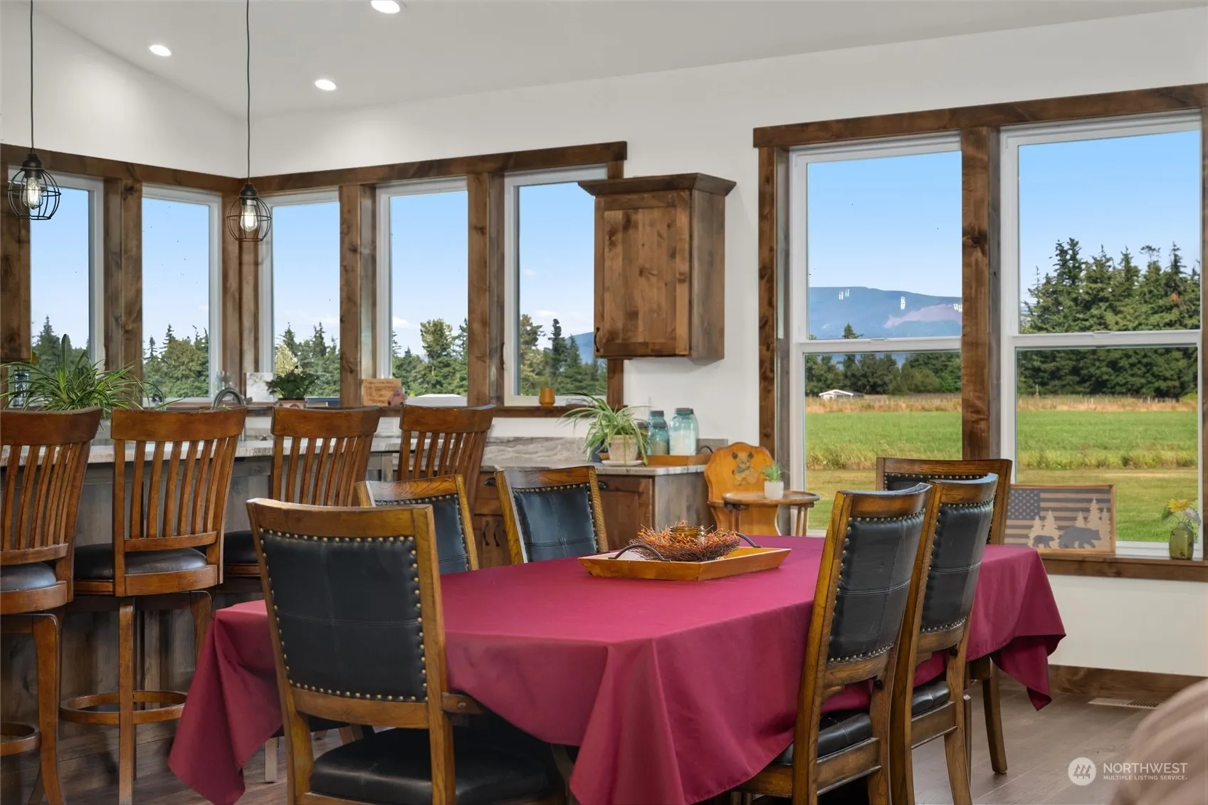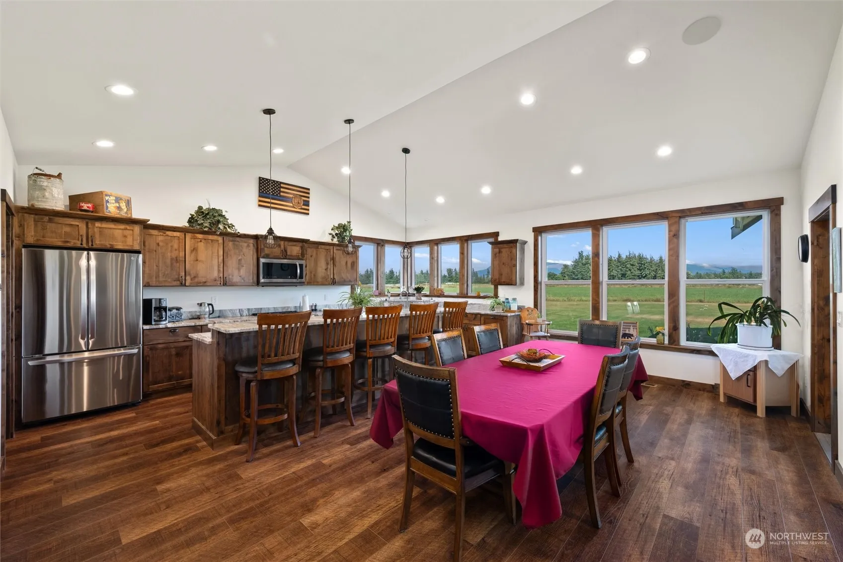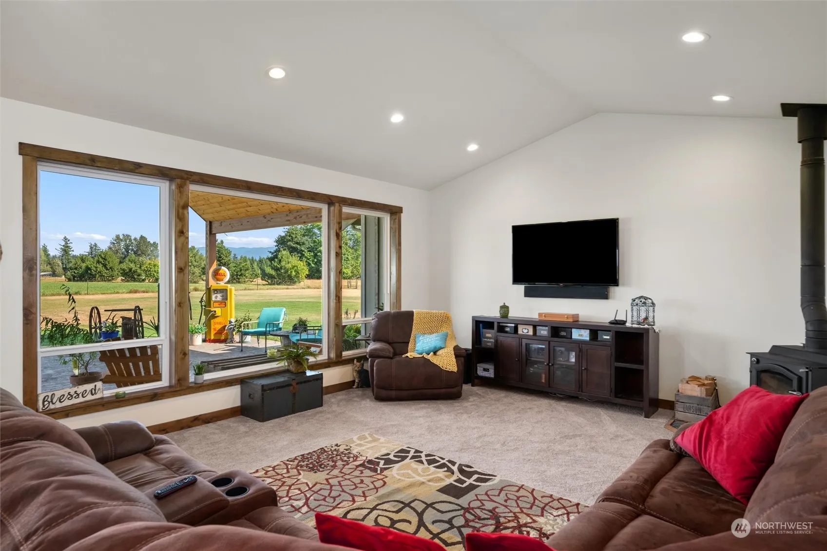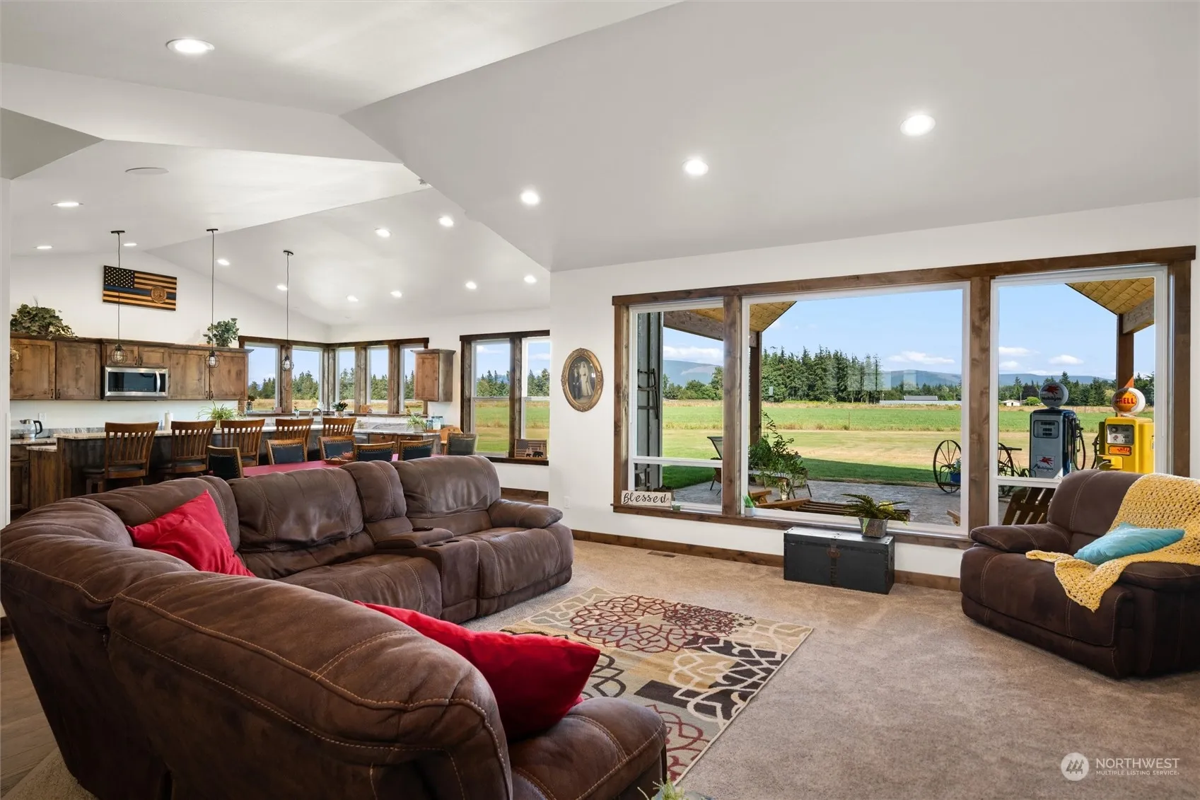 Perfectly positioned at the back of nearly 5 acres surrounded by tranquil farmland, this stunning 3 bedroom custom home offers breathtaking unobstructed views of Mount Baker. Thoughtfully designed for single-level living, the open layout makes gatherings a delight. Step outside to the covered patio, complete with built-in speakers and lighting, for effortless indoor-outdoor enjoyment. The recently refreshed barn offers endless opportunities for storage, hobbies, or creative projects, while the new greenhouse adds a touch of practicality for gardeners. Surrounded by rolling farmland yet conveniently close to town, this property is ideal for those seeking the beauty of county living with all the comforts of a modern custom home.
