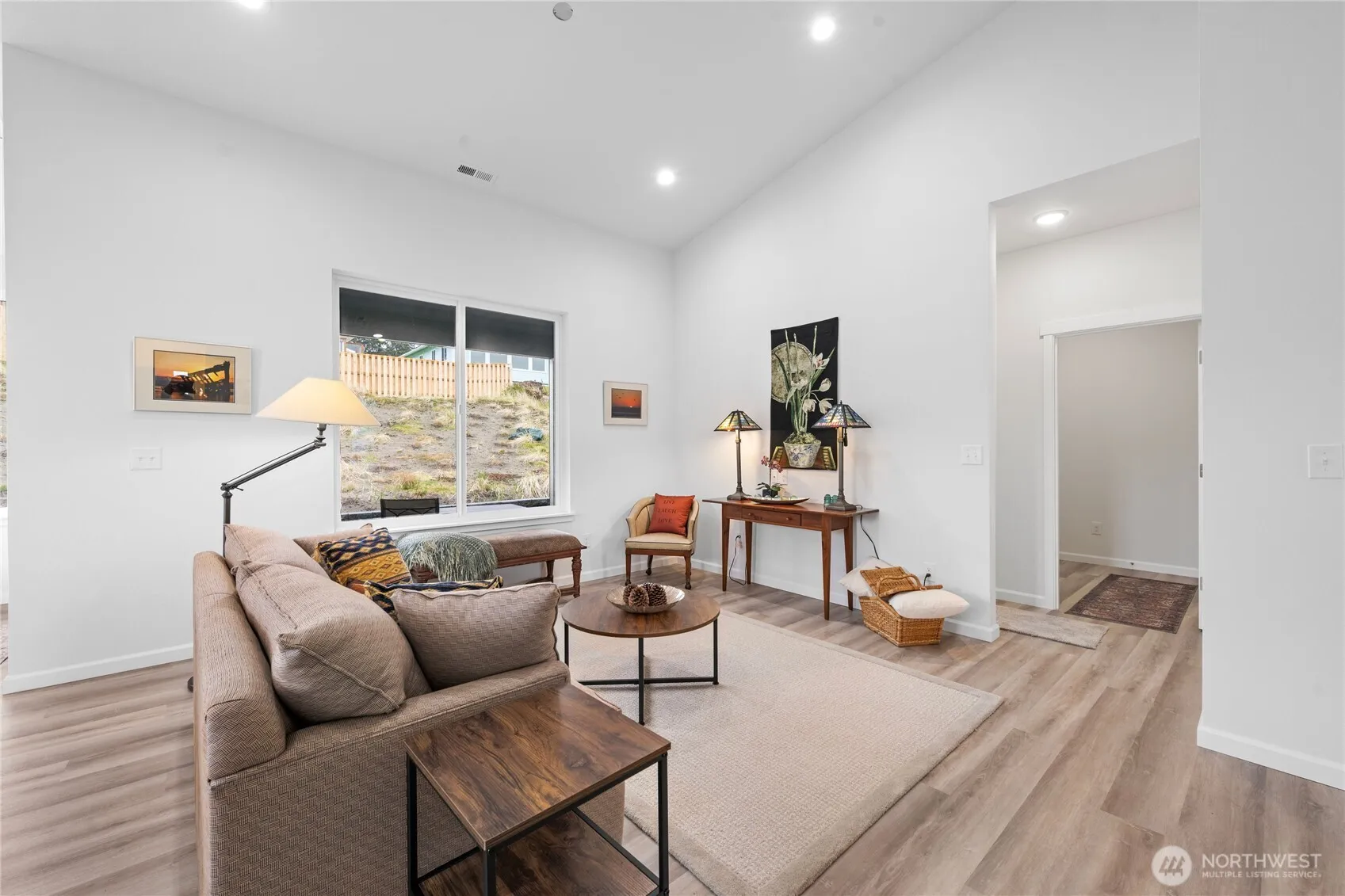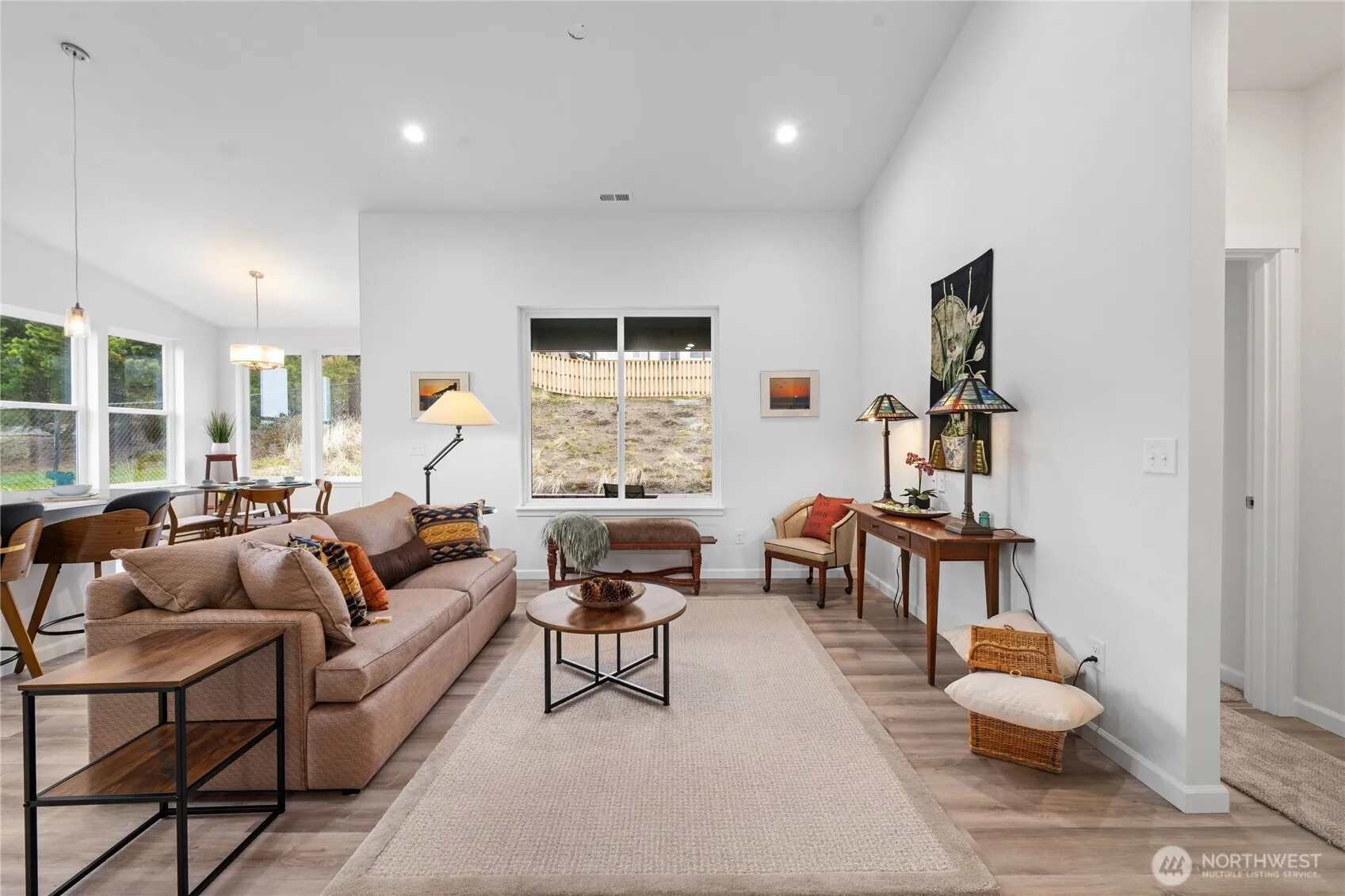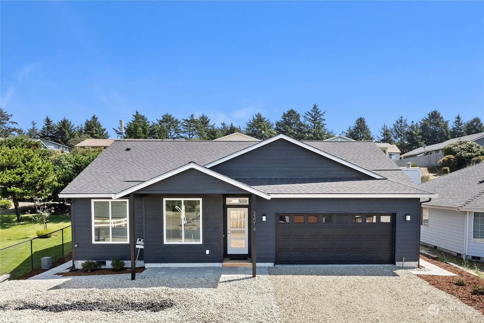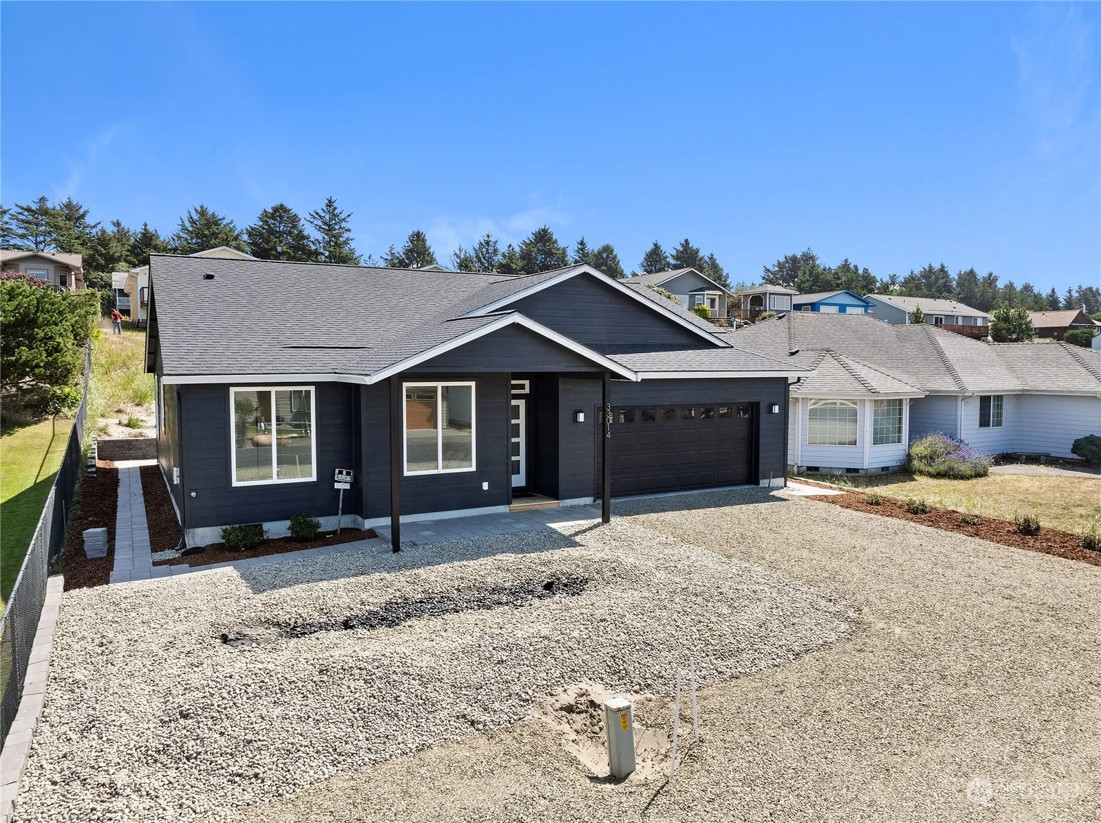 Be the VERY FIRST to live in this beautifully upgraded, NEW construction home. Bells & whistles for your enjoyment and quality of LIFE AT THE BEACH! This 3 BR/2 BA open-concept great room/kitchen/dining w/vaulted & 9′ ceilings lives large & bold! Windows were upgraded & upsized for amazing natural light, vinyl plank flooring for practicality, TRANE furnace & heat pump plus energy upgrades to insulation & appliances for future economic efficiency of this very well-appointed home. Enjoy color tones full of personality from cabinetry, walls & backsplash to Quartz counters & Island plus SS Appliances. Relax & enjoy the lovely dining room overlooking back covered patio & fully landscaped, terraced back yard that will fill in nicely. Move ON IN!