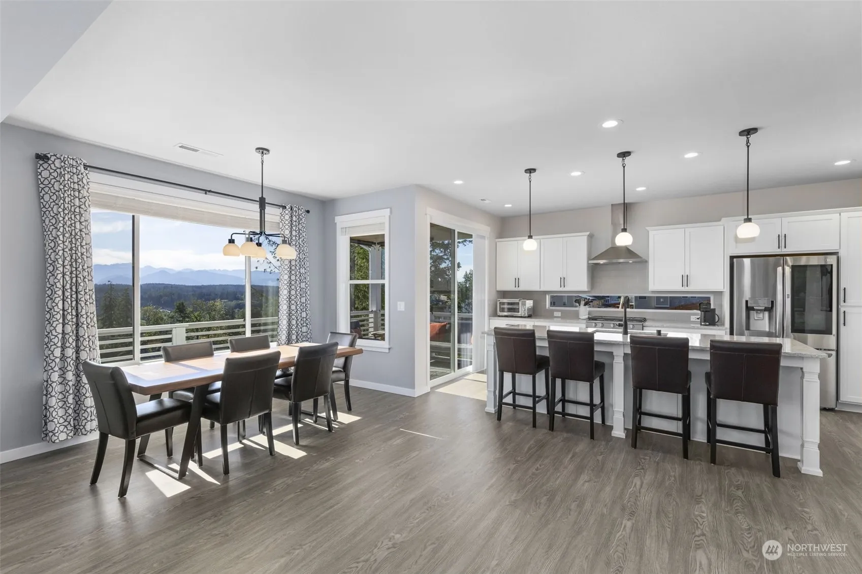 The BEST Views in Woodbridge! Spectacular like-new home was built in 2022. 2-story with a finished daylight basement is 3401sqft & on a larger lot with unobstructed Olympic Mountain Views. 5 bedrooms & 3.5 baths. Luxury vinyl plank flooring. Bright chef’s kitchen with large island & walk-in pantry. Kitchen is open to the living room with a gas fireplace. The covered deck allows you to enjoy the PNW beauty all year long. Main floor bedroom & 3/4 bath. 2nd floor primary with spa-like ensuite 5-piece bathroom including soaking tub with a view! Lower floor rec room & 5th bedroom with ensuite 3/4 bath. Fully fenced backyard. Just outside the heart of Silverdale, minutes to Bangor base and St. Michaels hospital. Location, View, & Move-in Ready!