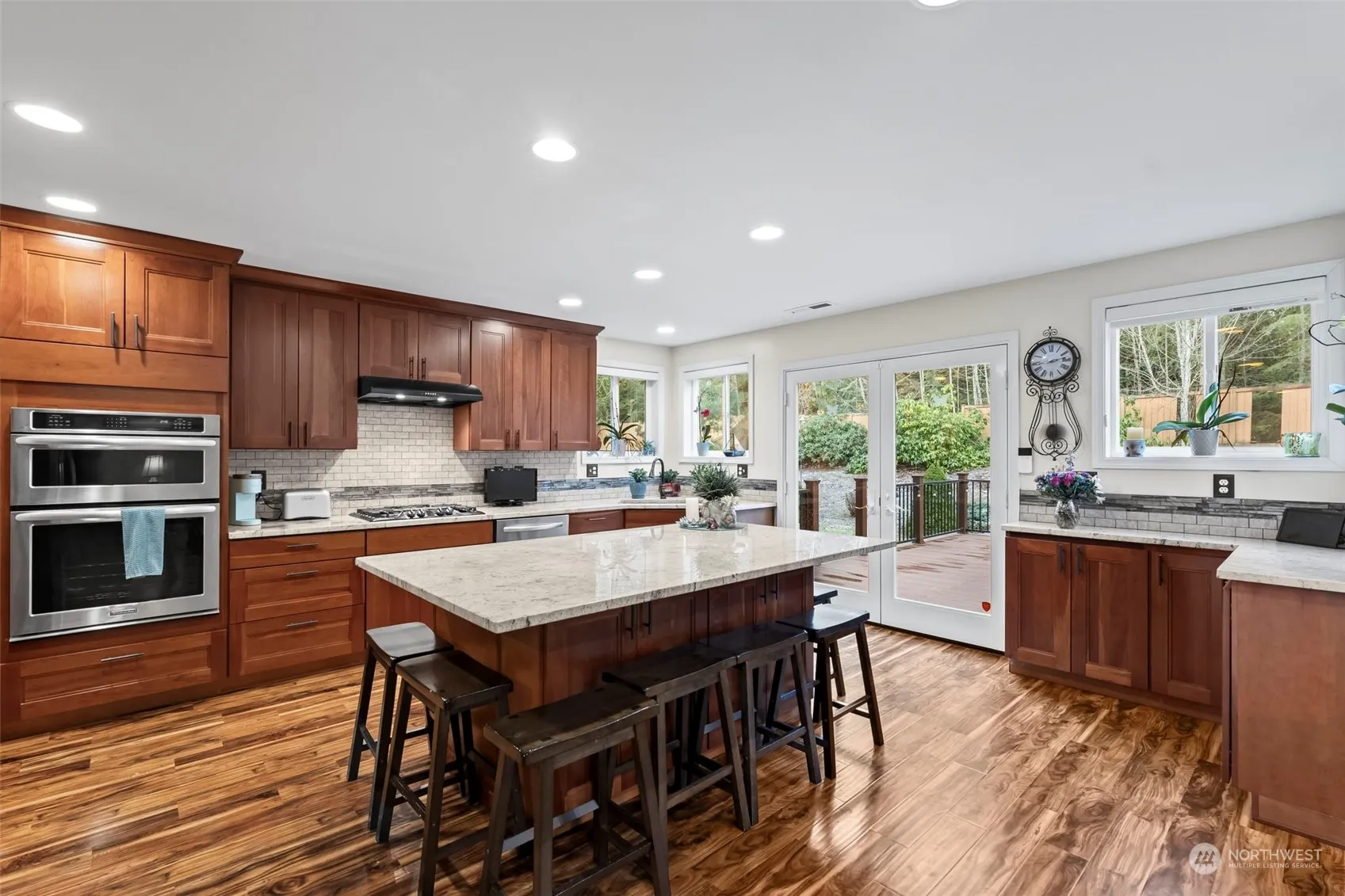 Discover the perfect blend of luxury and comfort in this 4-bed, 2.25-bath Snoqualmie Ridge home! Nestled on a tranquil greenbelt lot, this 2,574 sq ft gem features a massive back deck designed for summer gatherings or peaceful mornings. The chef’s kitchen has a huge granite island, gas range, and walk-in pantry. The family room, complete with a cozy gas fireplace, opens to the deck through elegant French doors. Retreat to the primary suite with it’s extended tile shower, dual granite vanities, and walk-in closet. Spacious bedrooms, including one with built-in desks and a Murphy bed, plus a versatile loft/flex space! Air conditioning, an abundance of natural light and access to nearby trails and amenities in beautiful Snoqualmie Valley!