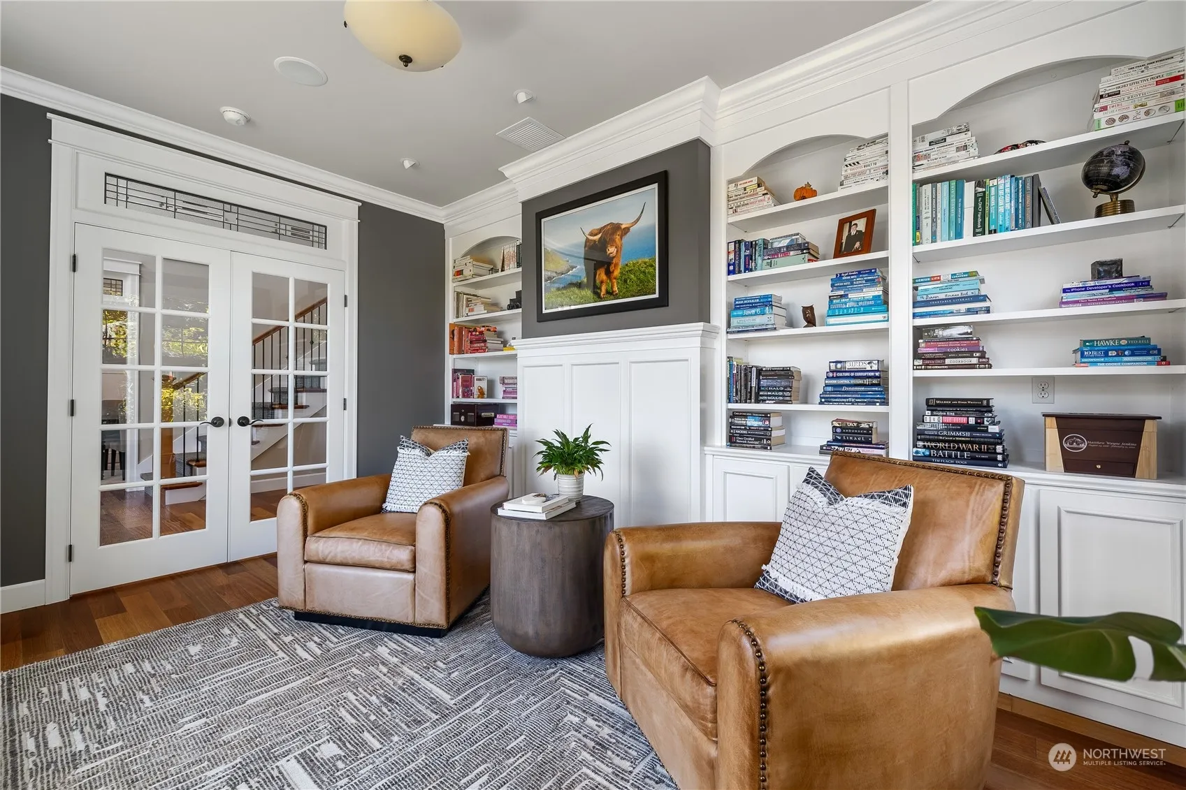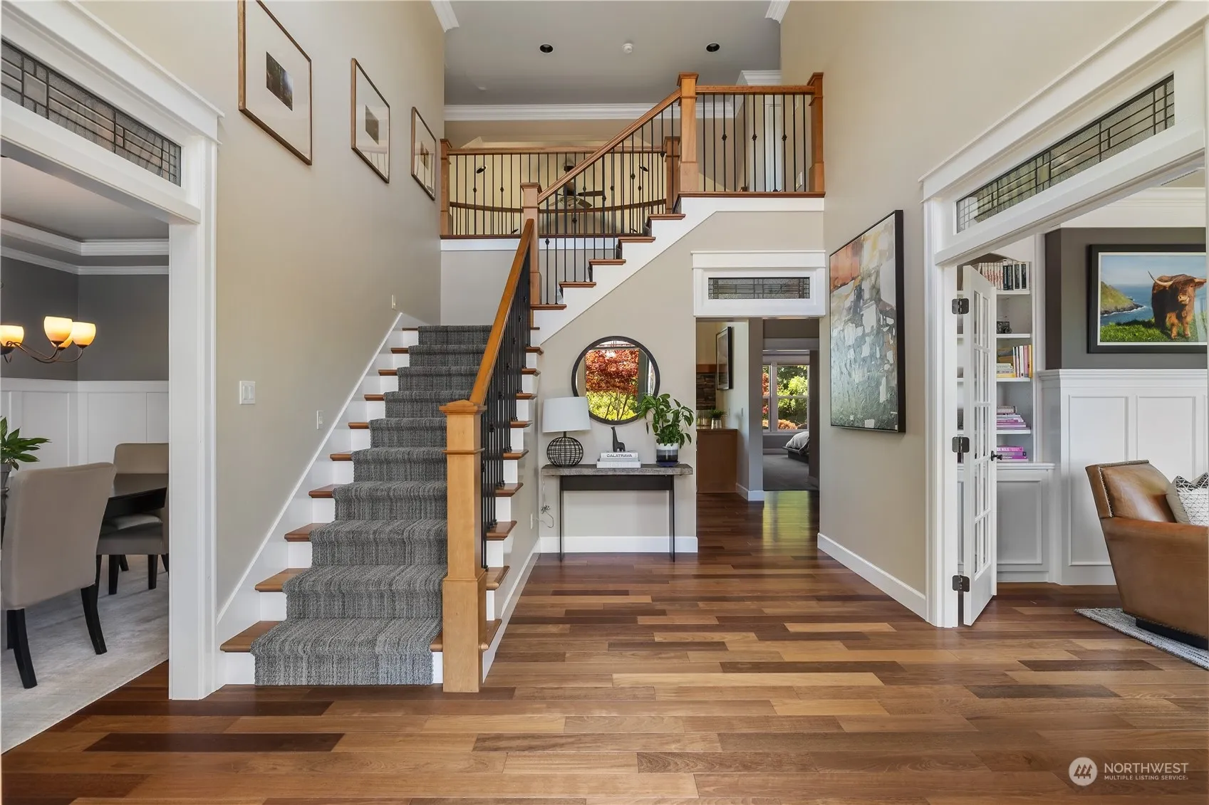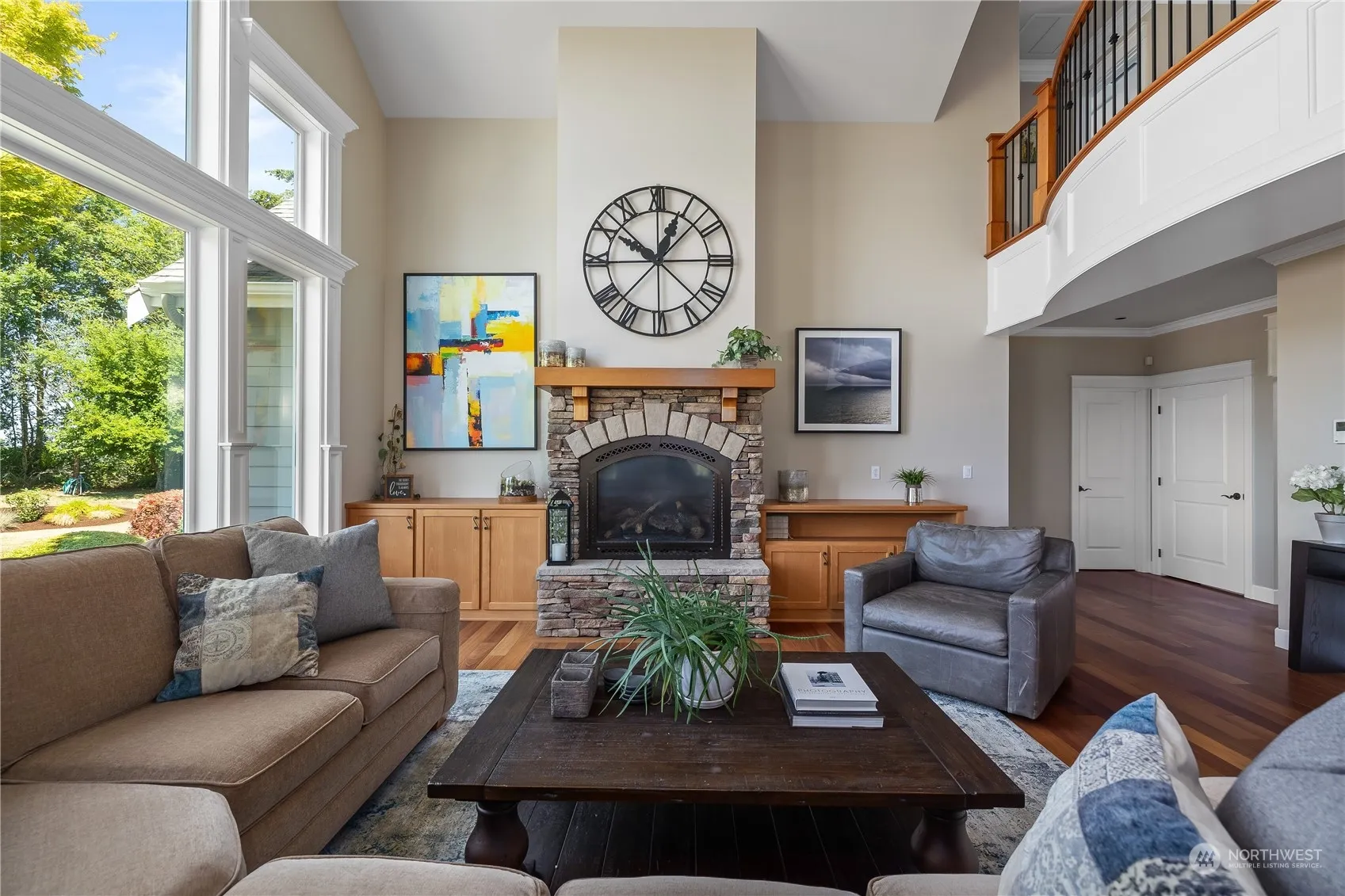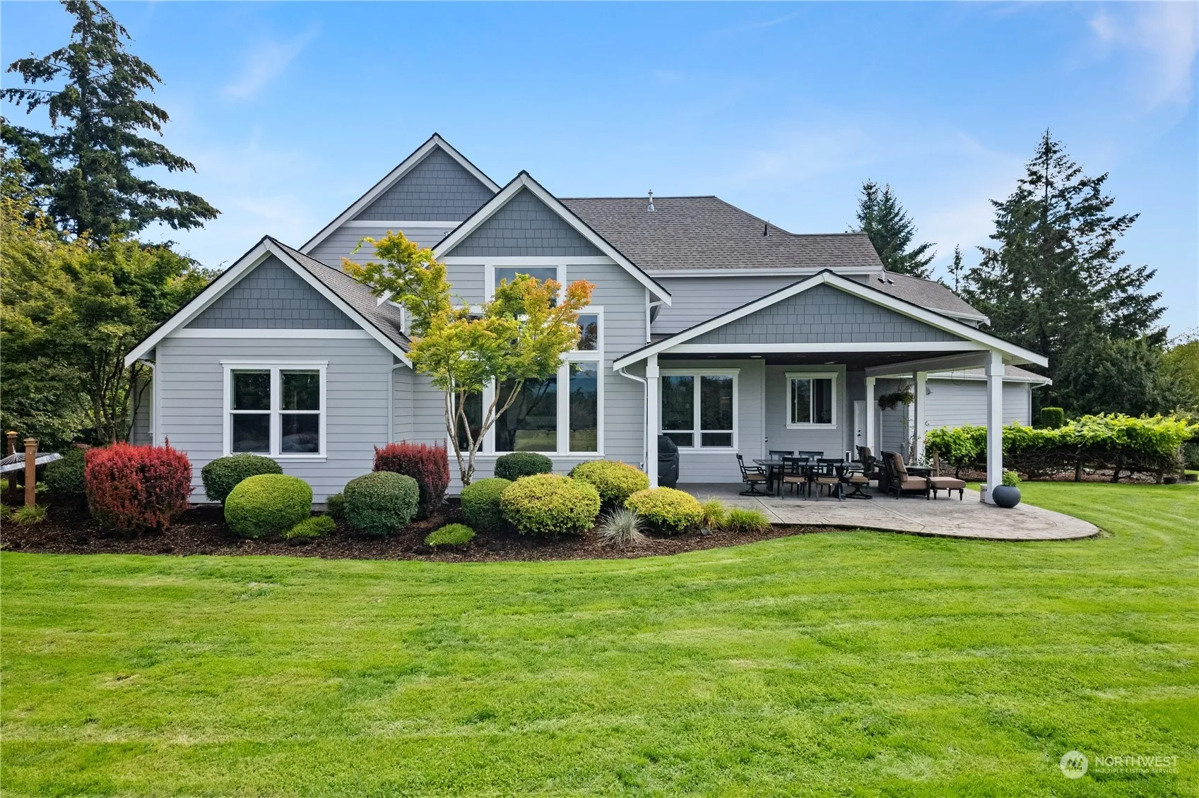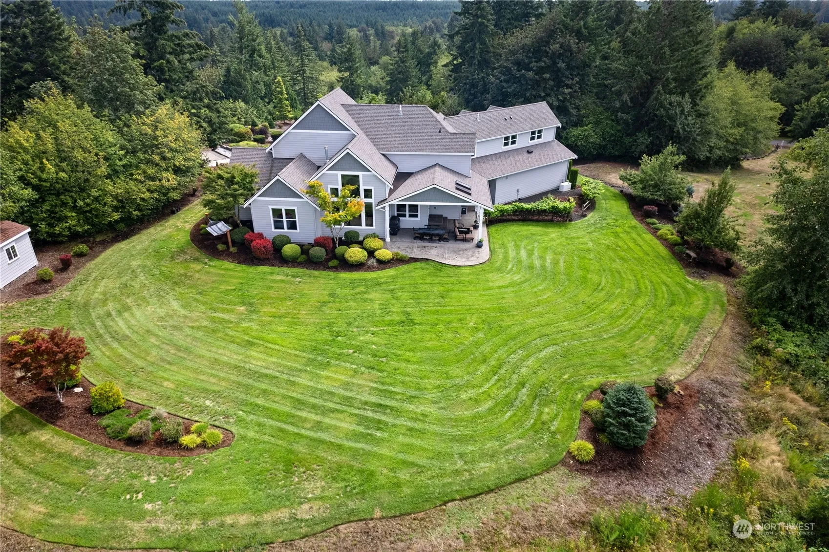 Welcome to this stunning 4197 square foot 5 acre estate atop Sunset Ridge – private 9 home large lot neighborhood with views of Black Hills & Mt.Rainier. On-point design features main floor primary bdrm, open concept gathering, guest bdrm w/en suite bath, media room & extensive outdoor living. Hardwood floors, hard surfaces, white doors & mill work, transom windows & 2 story entry lend a touch of sophistication to this open floorpan. Kitchen adapts to dine-in or entertain – double-ovens, Wolf stove, Island, SS food & bev fridges opens to breakfast nook, dining room & covered patio. Family rm w/floor-ceiling windows & gas stone frplc. High speed cable & private office for remote work. Den/2nd office w/built-ins. I-5 access.Tumwater Sch Dist.