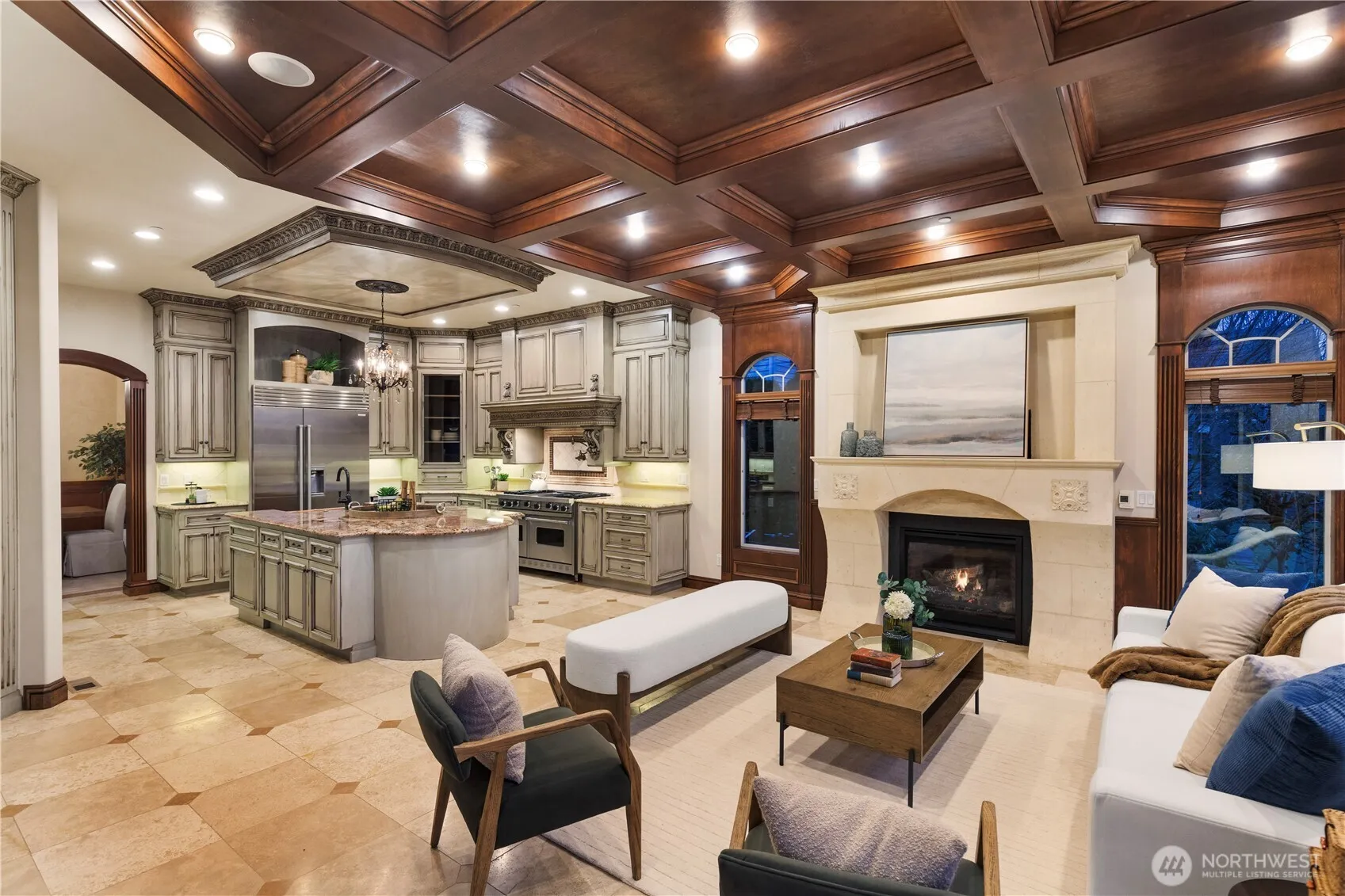 Experience unparalleled luxury in the Reserve at Newcastle, perched the 5th hole of the China Creek Golf Course. Designed for both elegance and ease, the main-floor primary suite boasts a spa-like bath, while three spacious guest suites await upstairs. The entertainer’s dream lower level features a wine cellar, theater, bar, wellness studio, and billiards area. An elevator provides seamless access across all three floors. Rich wood trim, extensive stonework, and soaring vaulted ceilings elevate every space. With expansive views and convenient access the Cougar Mountain trails located in the acclaimed Issaquah School District close to Bellevue & Seattle, this luxury home will impress!
