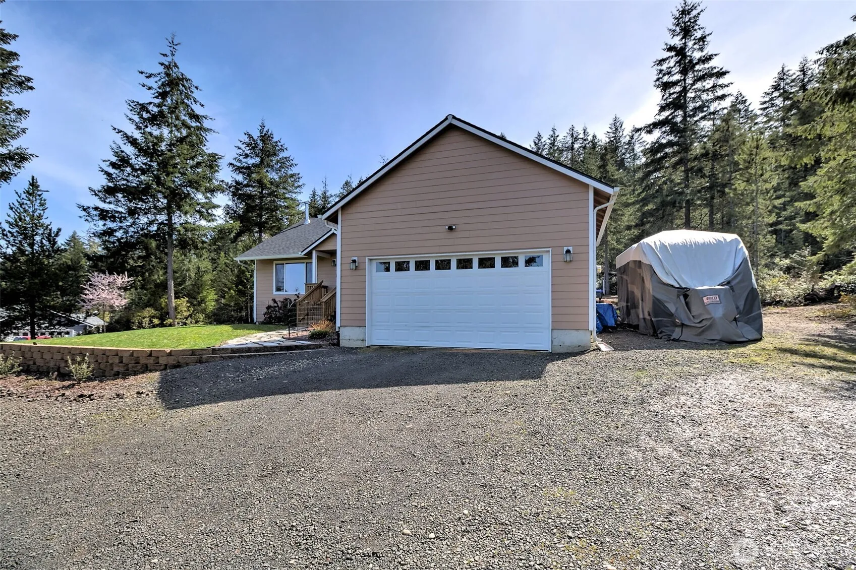 Fantastic opportunity to own your very own private acre of land with a meticulously maintained 1664 sq ft, 3 bedroom 2 bath rambler in a perfect country setting, in the Twanoh Heights Community! One level living with open concept floorplan, large kitchen w/ tons of storage, vaulted ceilings, and a wood burning fireplace, adds ambiance and warmth to an inviting setting. Adjoining dining area offers access to the back patio & covered porch, in ground fire pit, chicken coop, 2 fenced in and established gardens and a kids play area. Just far enough away but still a convenient distance to town, PSNS, Bangor, state & national parks, the Hood Canal, multiple golf courses, the WA State Ferry, and many other recreational opportunities!