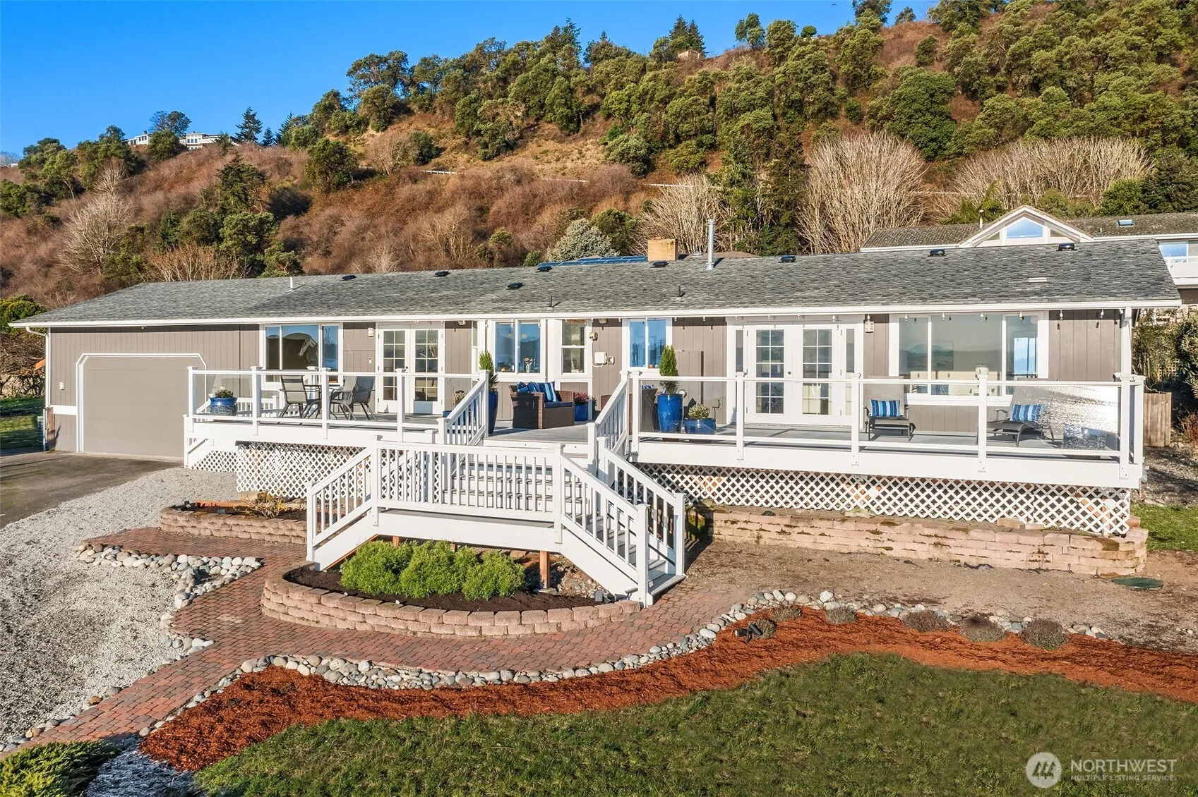 Fantastic views of southern Puget Sound and Mt. Rainier inspire, entice and delight the lucky owners of this all-one-level, easy-care home. Many doors invite you out to the expansive deck for conversation or contemplation, the private back yard is perfect as a sanctuary or a veggie garden and the home is serene and up-to-date with new kitchen, baths, flooring, carpet and paint throughout. The primary suite enjoys a huge walk-in closet/dressing room, a newly remodeled 3/4 bath and direct private access to the view deck. Very spacious 2-car garage & included tri-fuel generator. The Gold Beach community offers a pickle-ball court, clubhouse, seasonal pool, and year-round beach access. Life is better at the Beach!