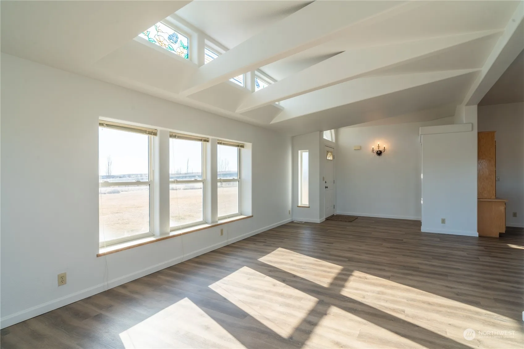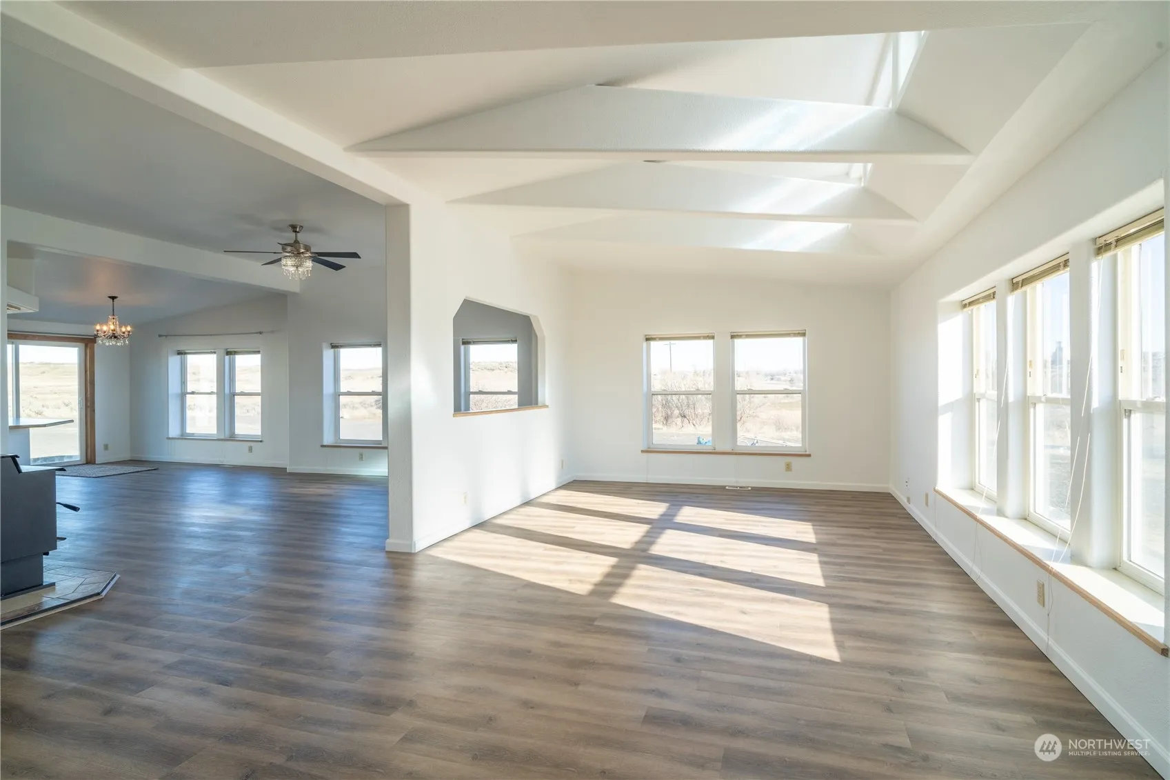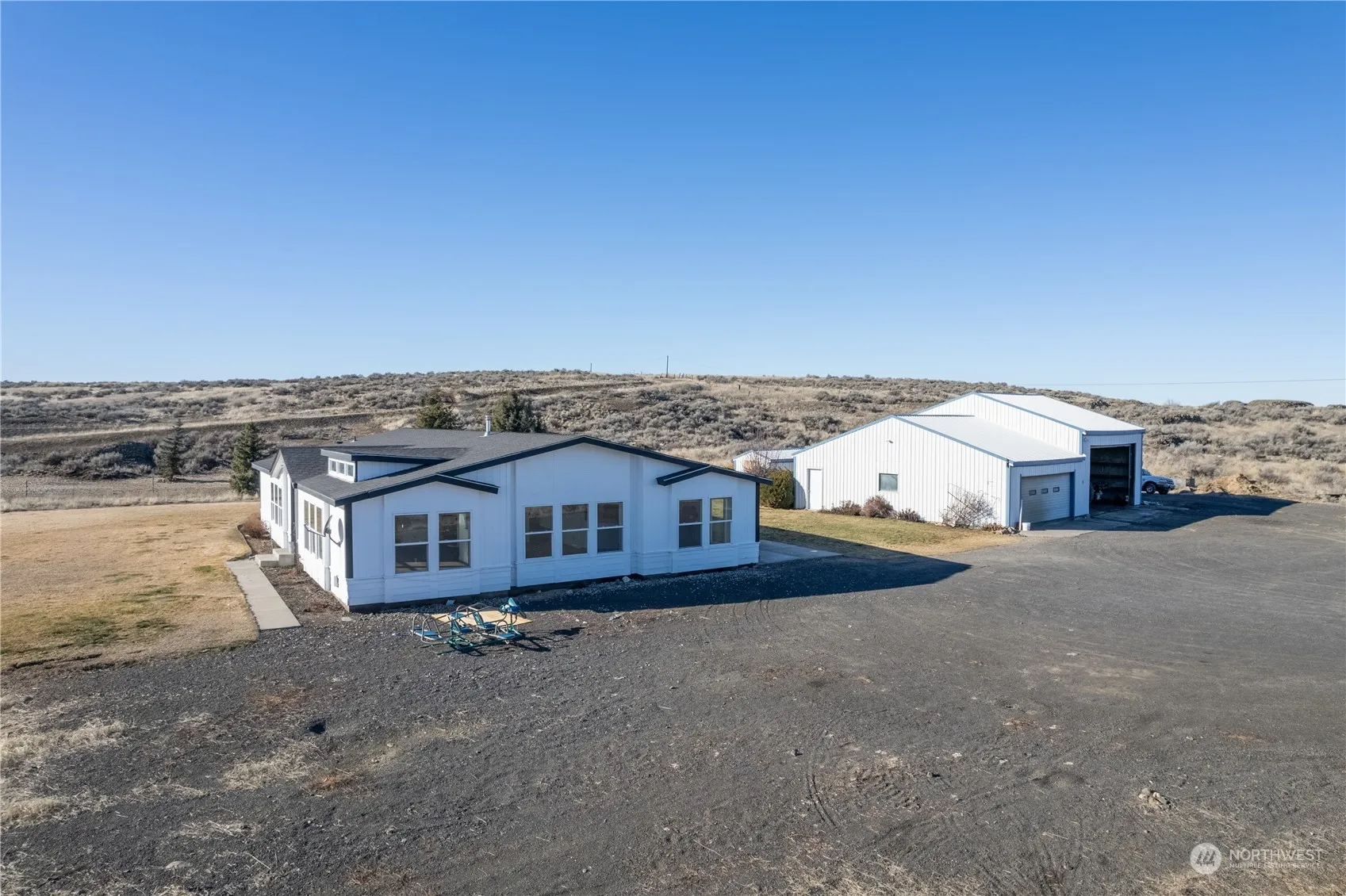 1994 Valley Quality Manufactured Home, Triple-wide 2320sq ft, 3 bedroom, 2 bath. 40×50 insulated pole bldg on 6.5 acres. This vaulted ceiling home has a spacious open floor plan. Kitchen has a center island and plenty of storage, including a walk in pantry. New Carpet, LPV flooring and fresh paint. Large master includes a large sitting area and a master bath with double sinks, a jetted tub and large shower. Home has AC. The shop has a two car garage with a shop in back as well as an RV garage with plenty of storage for all your toys. The property has 2 fenced pastures and is ready for a mini farm or farm animals. A must see.