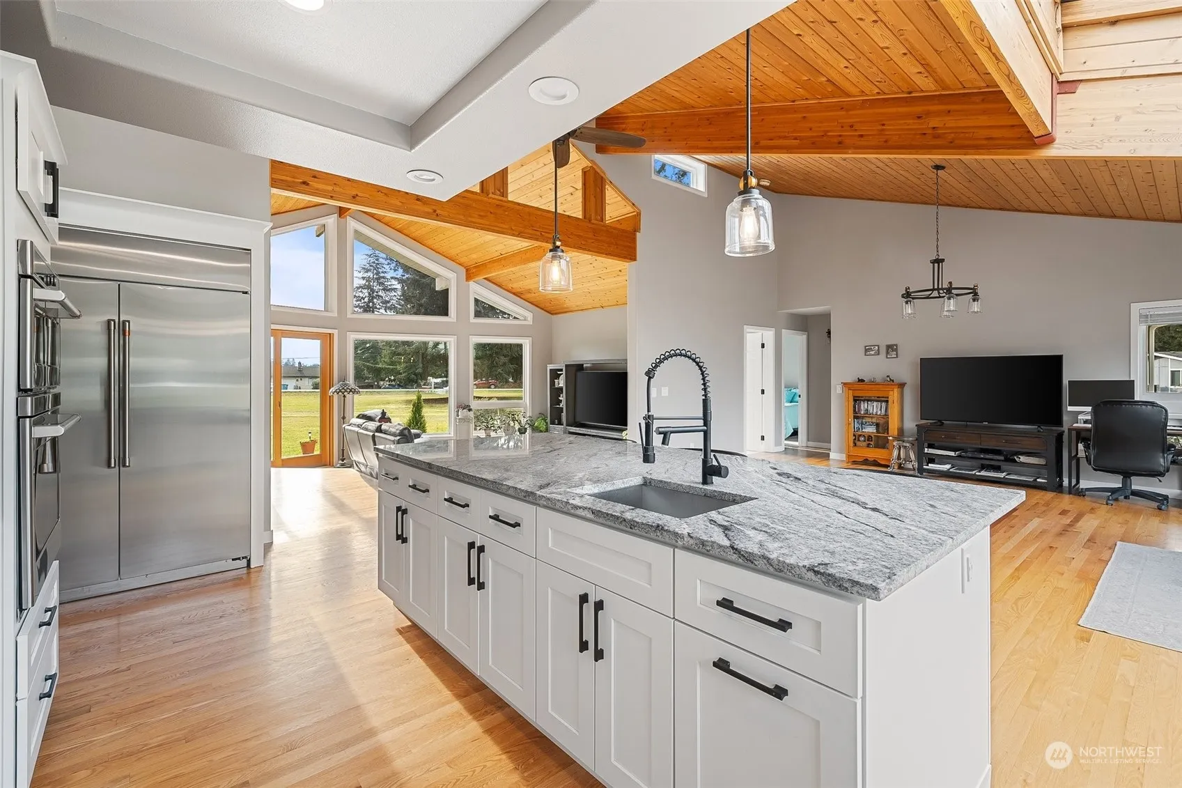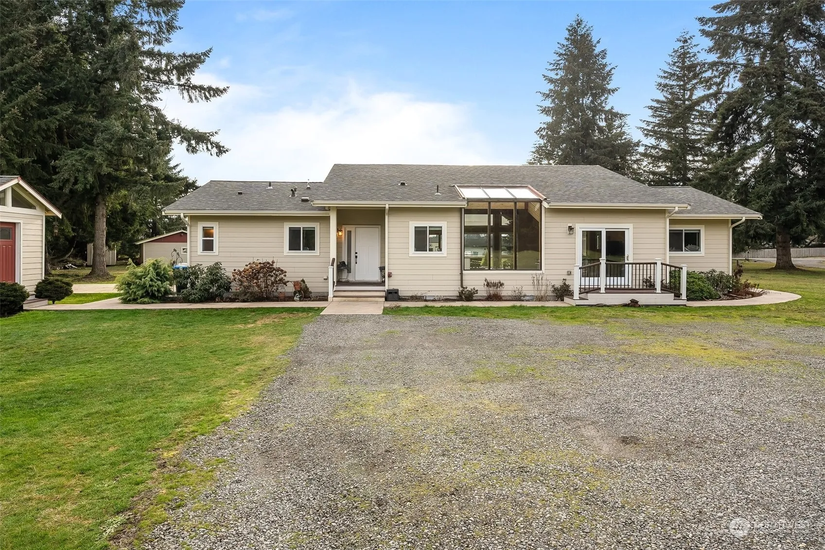 Nestled on 2.5 acres, this beautifully renovated one-story home is a true gem! Stunning floor-to-ceiling gable windows fill the space with natural light, while the split floor plan highlights a spacious primary suite with a luxurious ensuite. Enjoy the sunken living room, elegant hardwood floors, and an entertainer’s dream kitchen featuring a grand island. Outside, a two-bay shop with storage, a greenhouse, and a private heated detached office/hobby space await. Conveniently located between Tumwater and Chehalis with easy I-5 access, this property blends modern living with serene rural charm.