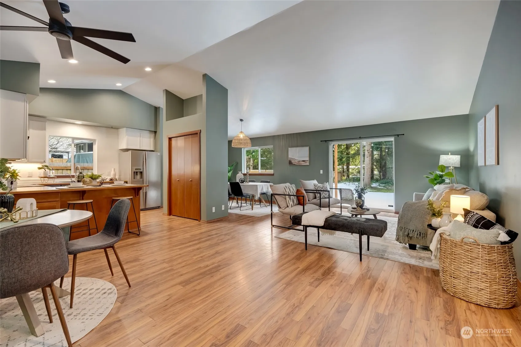 Tucked away in the foothills of the Cascades in the Big Bend Neighborhood, this cozy 3-bed, 2-bath rambler offers the perfect blend of comfort and adventure. Just steps from shared river access, enjoy 2 private beaches and a secluded swimming hole with stunning mountain views. The light-filled, open floor plan connects the living, dining, kitchen, and breakfast nook, while the back slider leads to an oversized, level 1/3-acre fenced lot—ideal for summer BBQs. The spacious primary suite features an ensuite bath, with two additional bedrooms to enjoy. Washer and dryer included. RV and boat parking, plus a 2-car garage with extra space for more cars. Only 40 mins to Stevens Pass skiing and 12 mins to world-class climbing and rafting in Index!