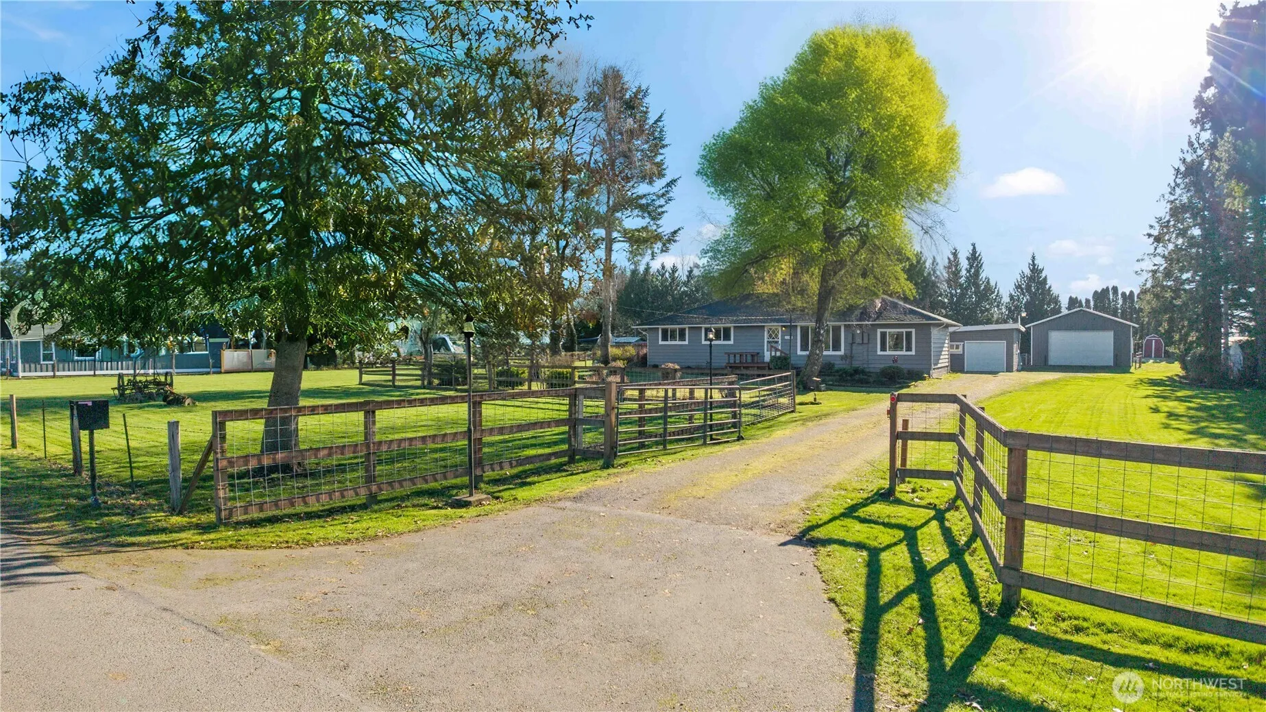 Immerse yourself in this rare, rambler home on acreage. Thoughtfully renovated, this home captures modern luxury paired with warmth. The primary ensuite, 3 guest rms, formal DR & 2 generous living spaces make it ideal for multi-gen living! The heart of the home is the chef’s kitchen, w/high-end SS appls. Culinary enthusiasts will appreciate the central island w/cooktop, wall oven w/air fryer, custom cabinetry & lounge dining. The Ruvati sink, Corian CT’s, lighting, & wine rack complete the refined ambiance. New furnace/LG Thinq W/D. 1120 sqft shop, 2-car DG, canning rm, livestock shelters, & garden. Fully fenced grounds create a private & tranquil space for a sports court, horses, & DADU. TOUR INSIDE TODAY!!
