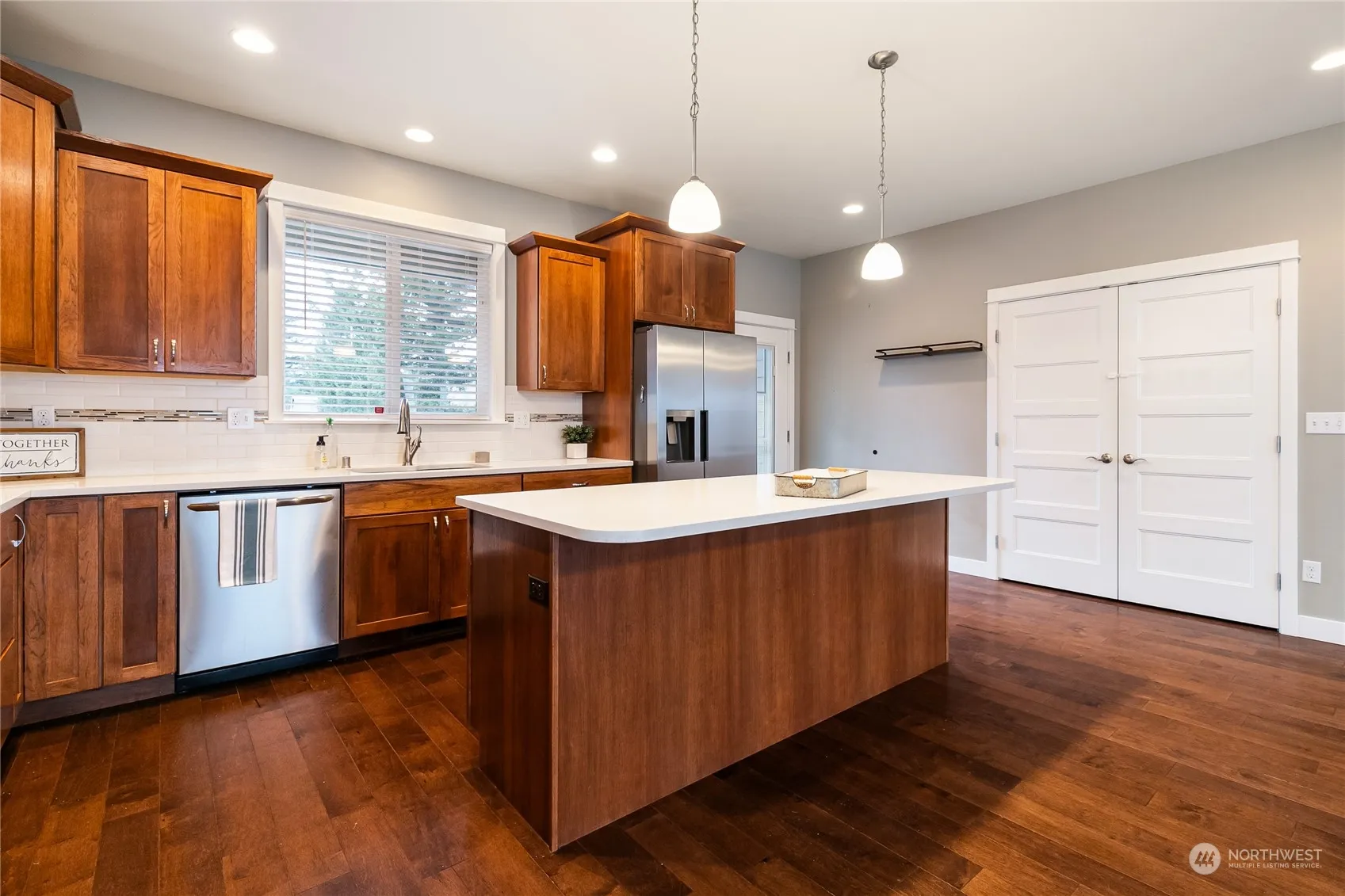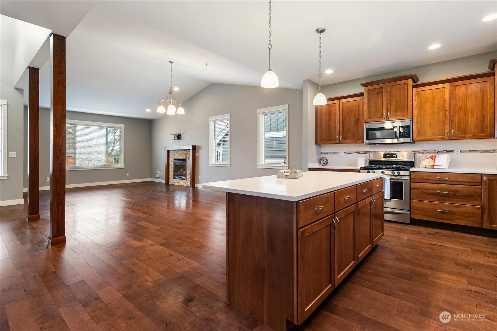 Come and enjoy this detailed 4 bedroom home that has a spacious and private backyard in a fantastic neighborhood. The kitchen is very inviting with an oversized island for entertaining and the great room feels quite spacious with vaulted ceilings. The generously sized primary suite is on the main floor with a large en-suite bathroom. There have also been many recent updates to the home including: carpets + upstairs flooring replaced in 2023, while in 2021 Central AC, the cedar fence and window blinds were added. Sit out on the back covered patio, or grow some of your own veggies in the raised garden beds with irrigation already set up. Situated close to schools, parks, and downtown Lynden makes this is an excellent location.
