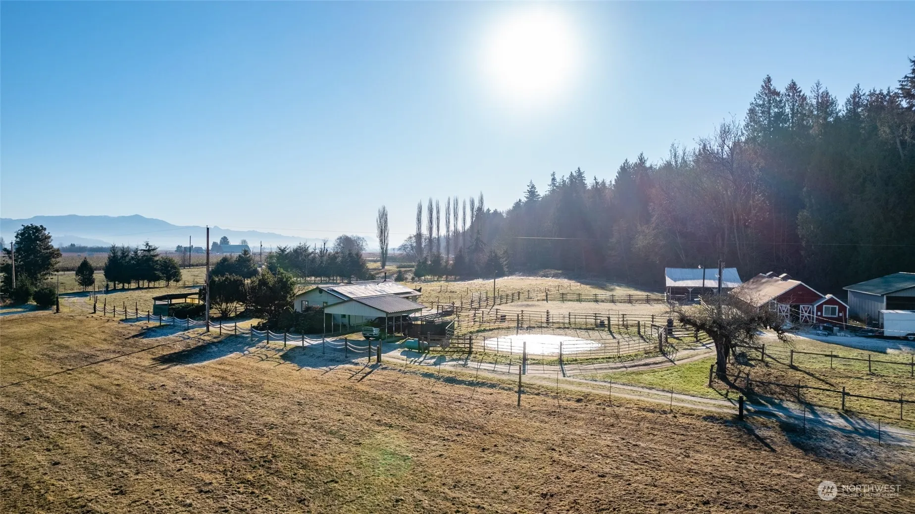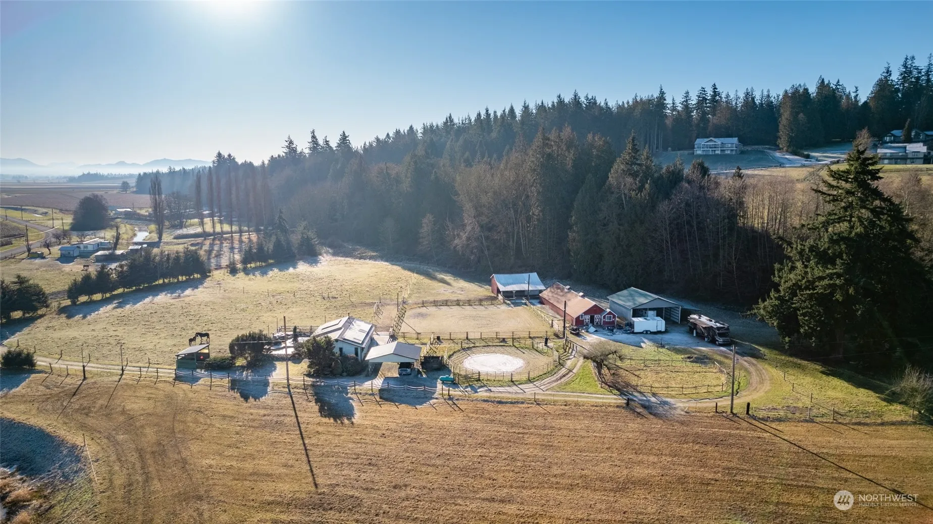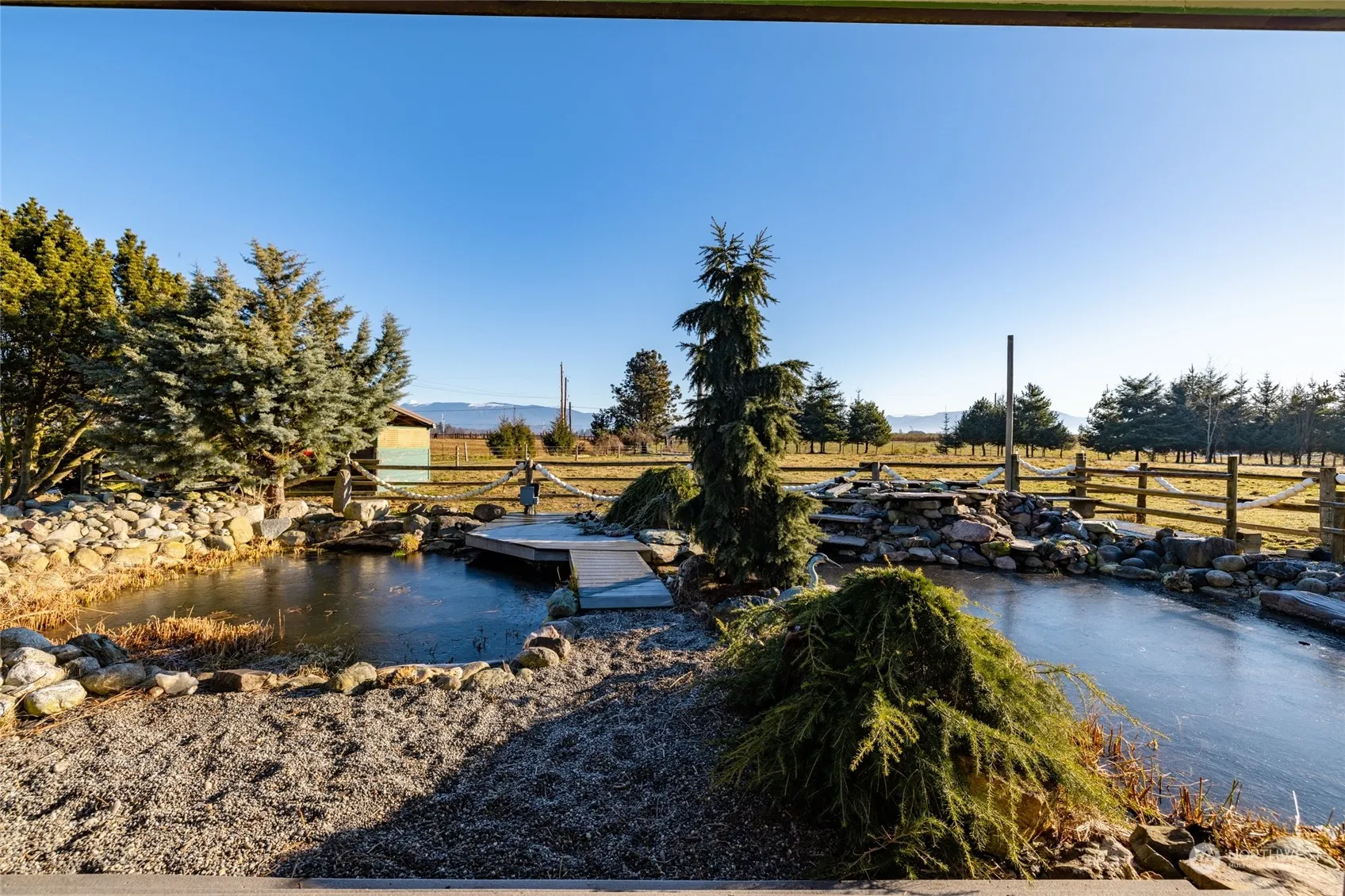 Bring your horses!! This adorable custom built, one level home in Bow w/approx. 6 acres of crossed fenced fields, electric fencing, lighted outdoor arena & round pen. A lg. 2,224 s/f barn w/6 stalls, 220 wiring & misc. rooms for your hobbies. A 36×36 machine shop w/lean-to, 720 s/f hay barn with feed trough. The 3 bedroom home offers 1 3/4 baths, PUD water, lg. windows that capture the gorgeous Mt. Baker and pastoral views, a cozy propane stove, new flooring & freshly painted. Home has a metal roof and solar panels. A 10,000 gallon filtered Koi pond off the front deck w/waterfall. Seller previously had a hot tub, hookup is in place. Pasture abuts side deck to interact with your horses. Property has full hookup for your RV w/110 amp service.